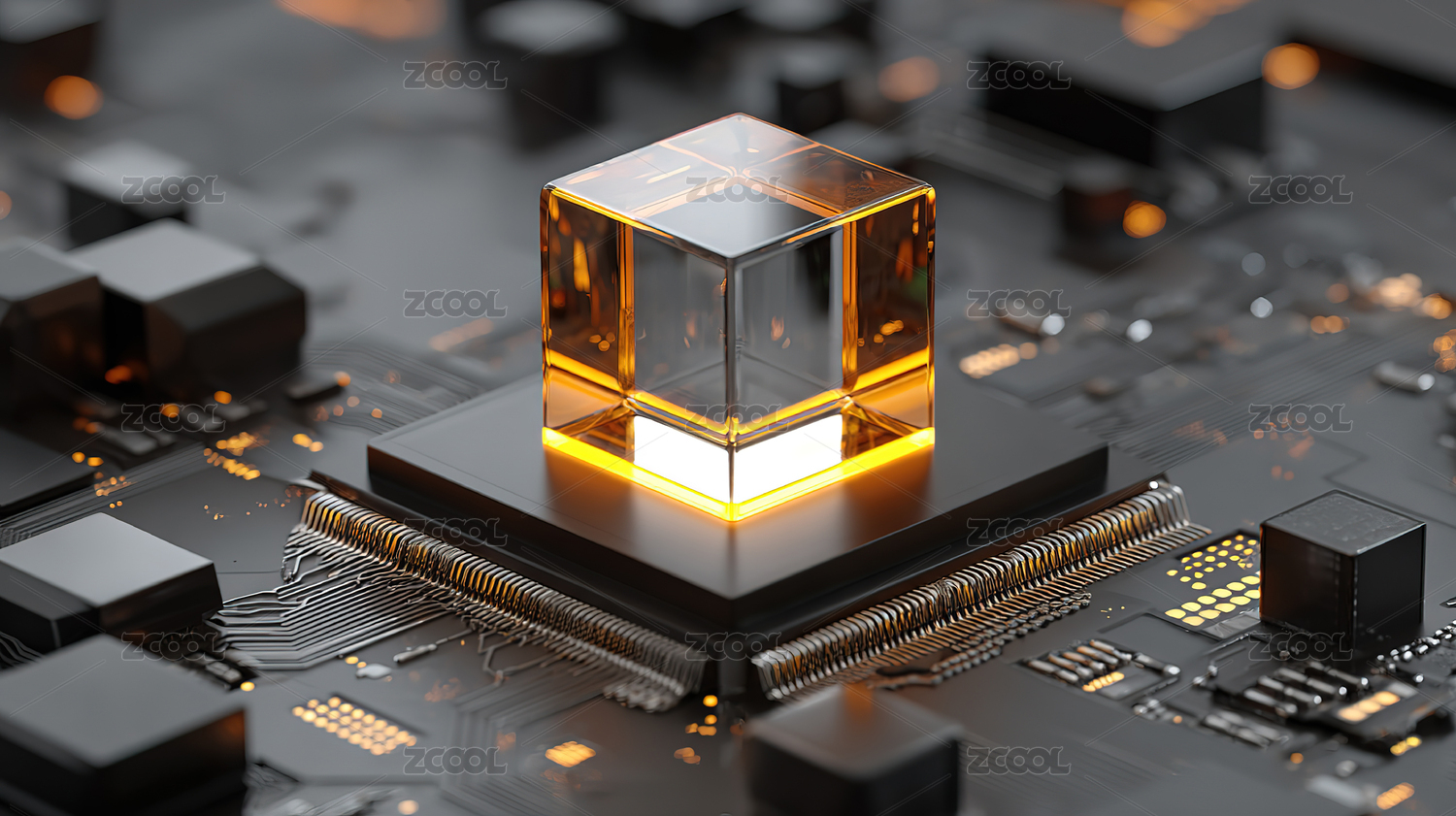 透明立方体与电路板