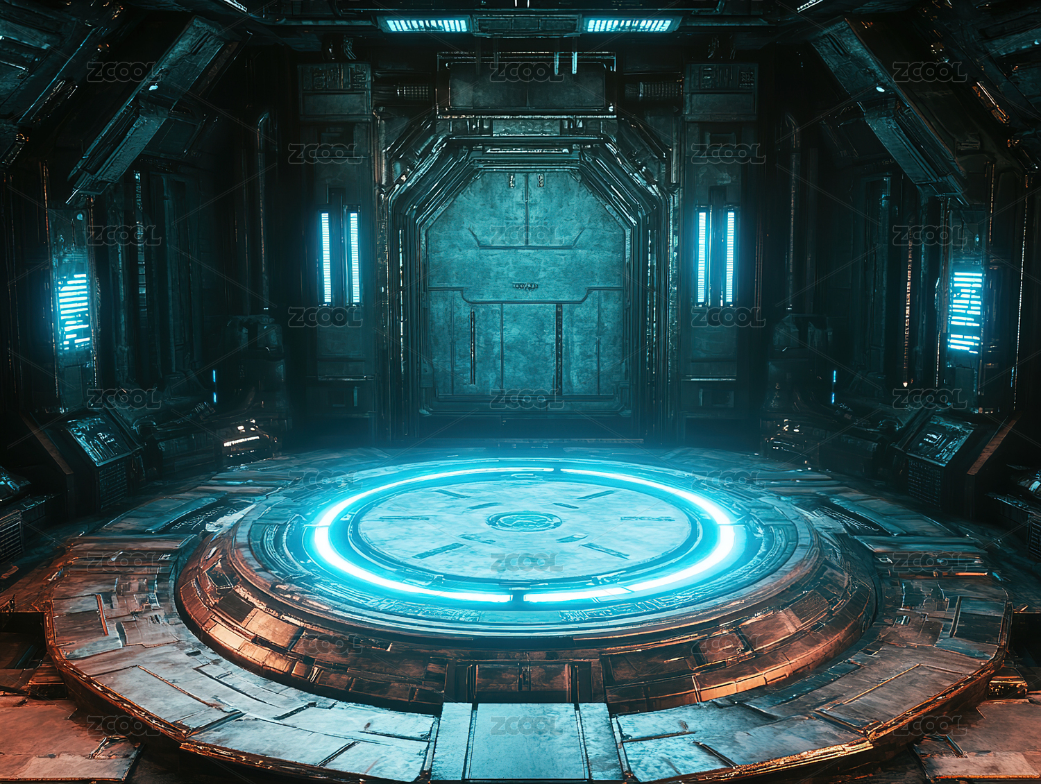 深色的科幻空间太空仓内部