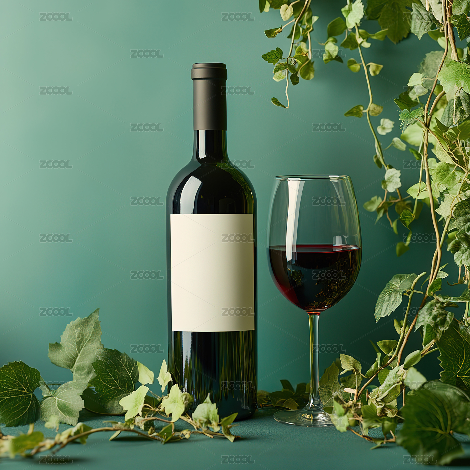红酒瓶与藤蔓