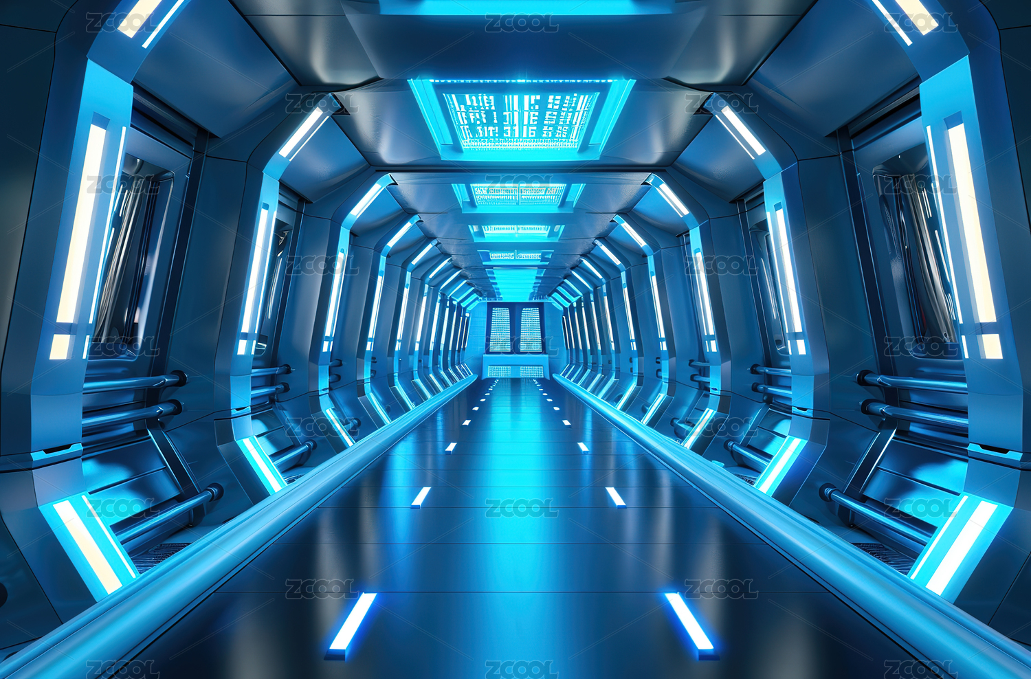 现代,未来,建筑,人造空间,背景,三维图形,AI数字艺术,隧道,光,室内