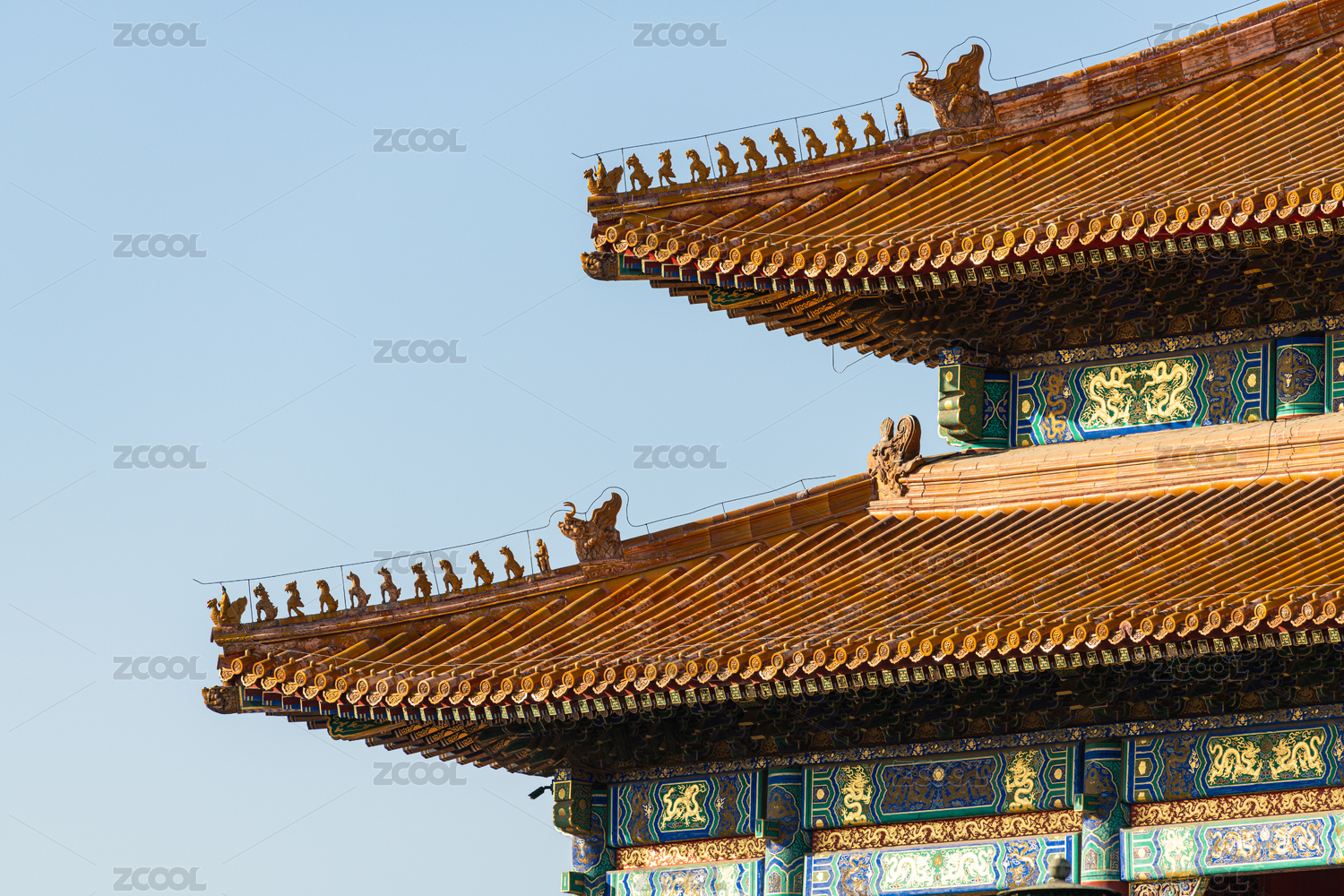 中国北京故宫东方古代建筑屋檐上的脊兽