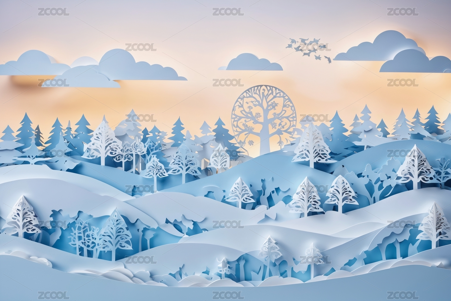 冬日森林艺术剪纸画主题