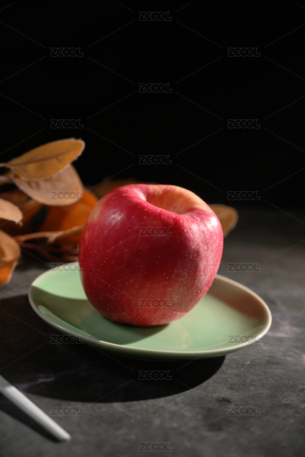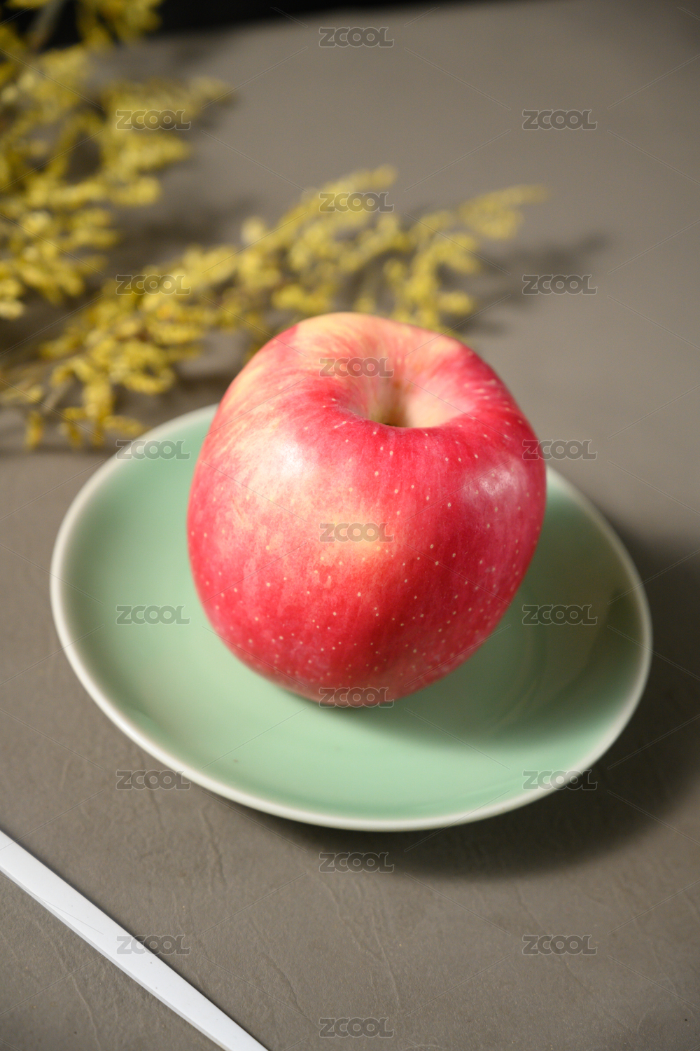 桌面上的盘子里的美味可口的新鲜苹果