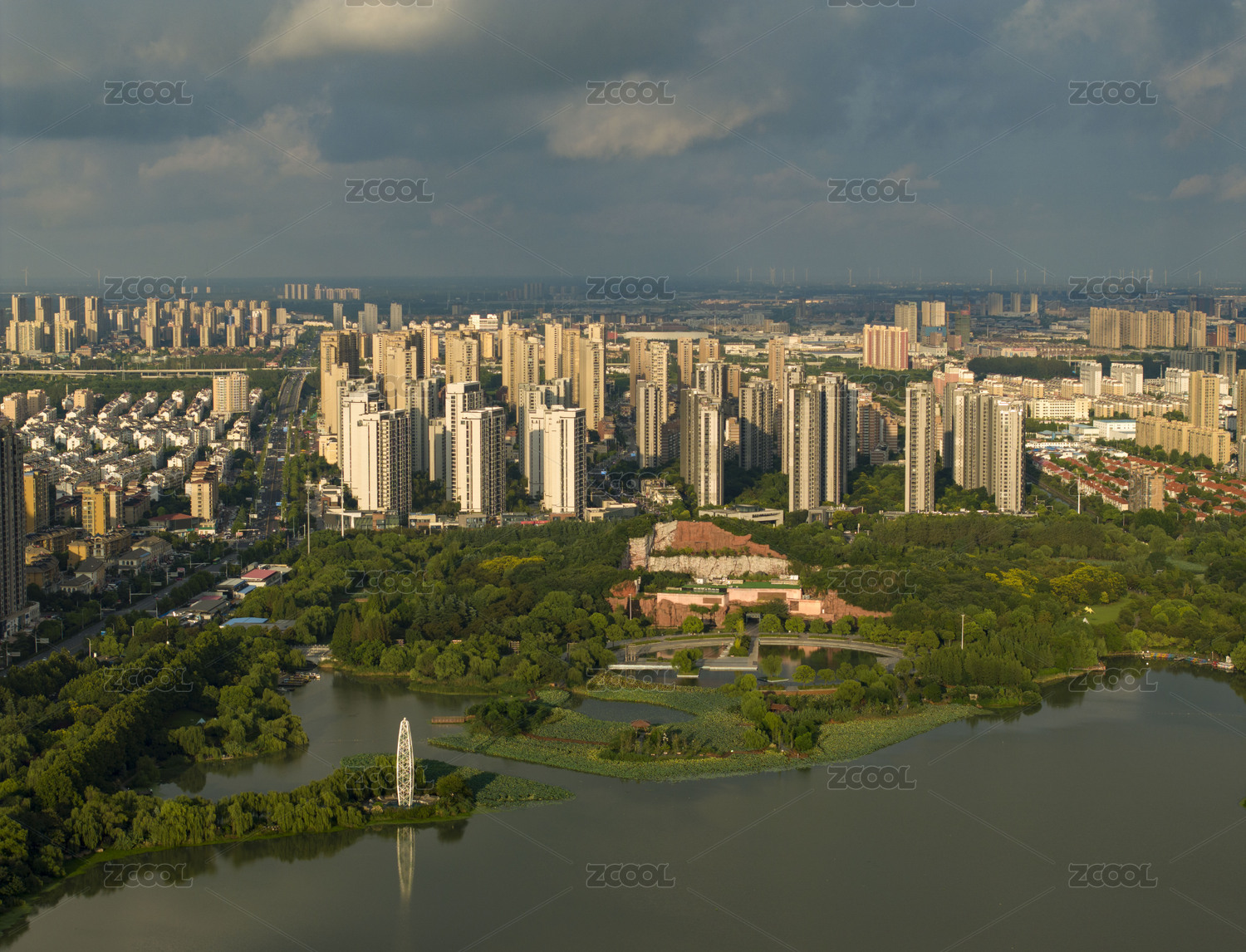 四川成都东湖公园及市区建筑航拍图