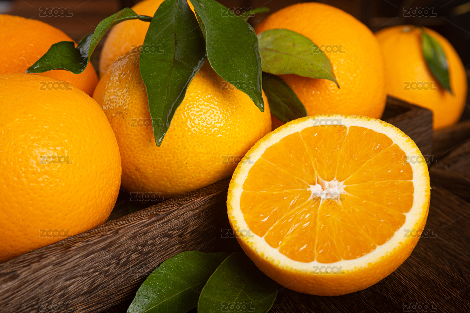 暗色背景切开一半的橙子