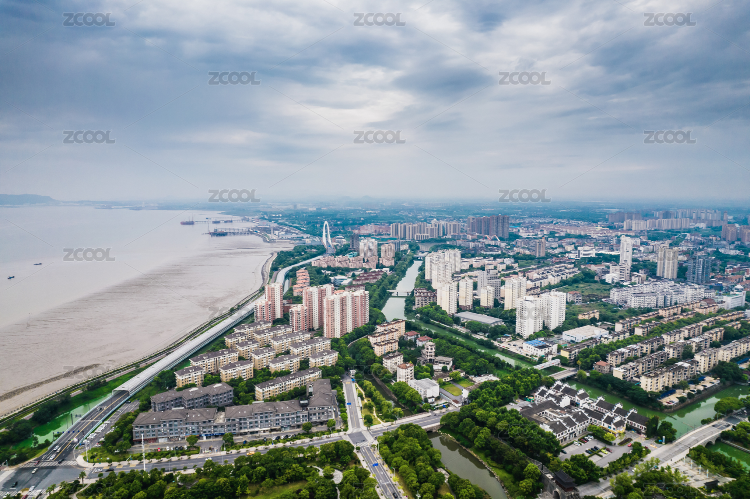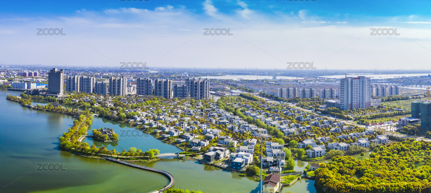绍兴市柯桥区城市风光航拍,瓜渚湖湖滨公园