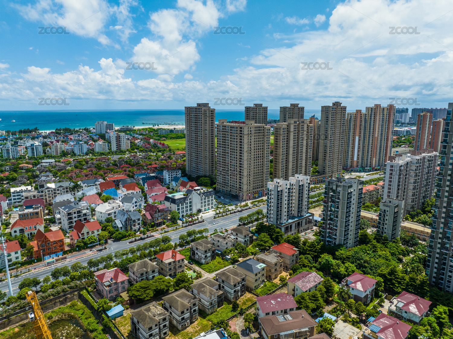 中国海南省海口市海甸岛美丽沙滨海城市公园航拍