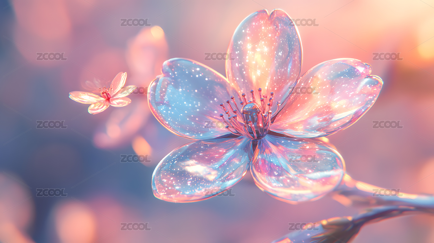 花,三维,科幻,科技感,光影,植物,花朵,玻璃质感,梦幻,亚克力