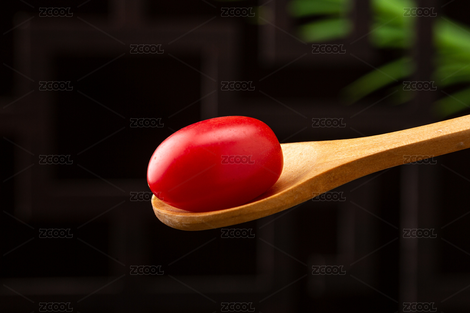 木纹背景上勺子里剥开的咸鸭蛋蛋黄