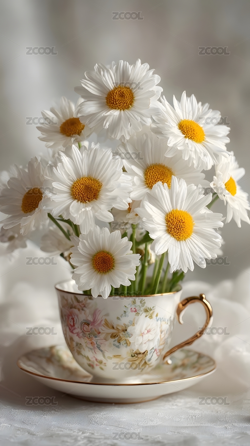雏菊花束茶杯静物