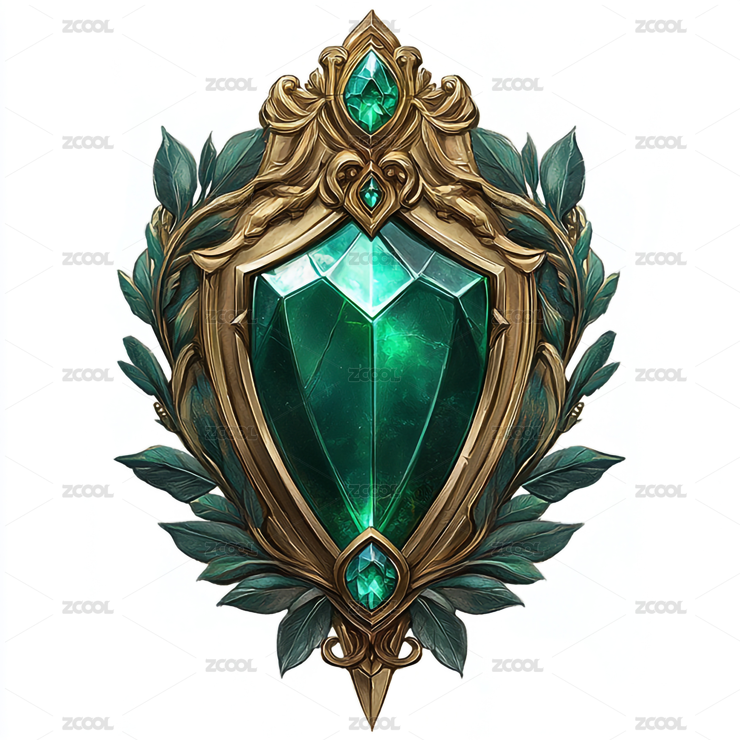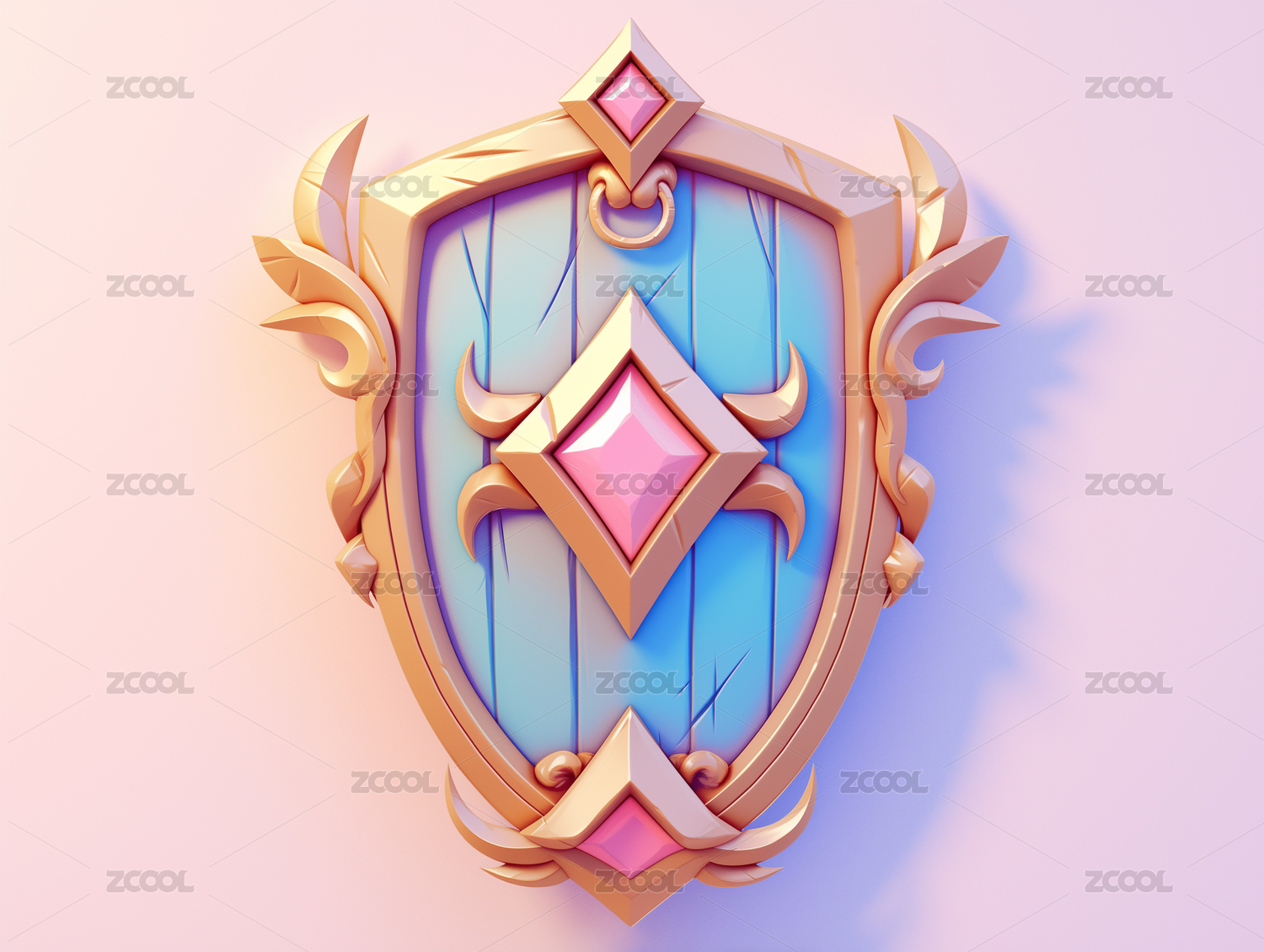 黑底游戏装备荧光色盾牌徽章3D立体插画