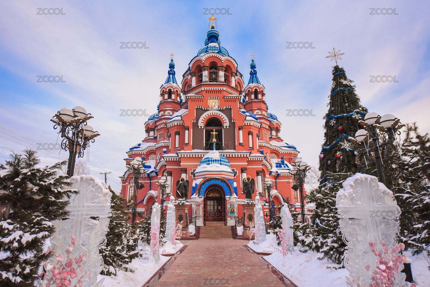 黑龙江哈尔滨伏尔加庄园瓦西里亭雪景