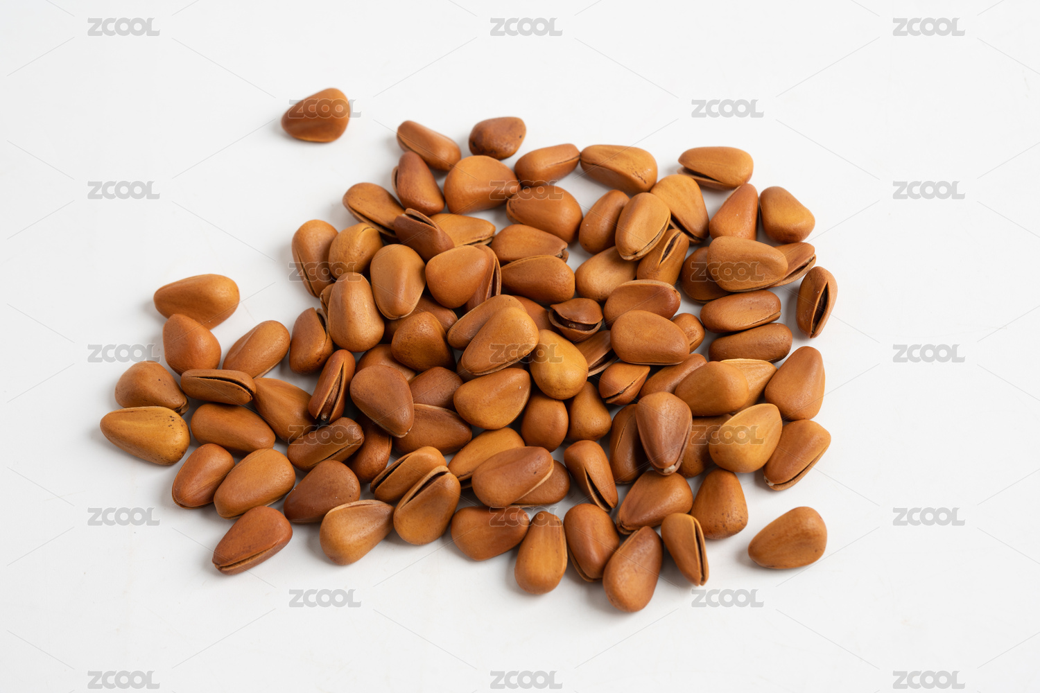白色背景前的一堆散松子