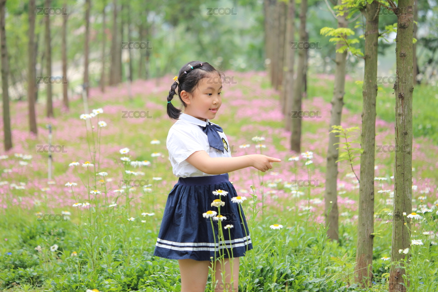 在花园里玩耍的小女孩