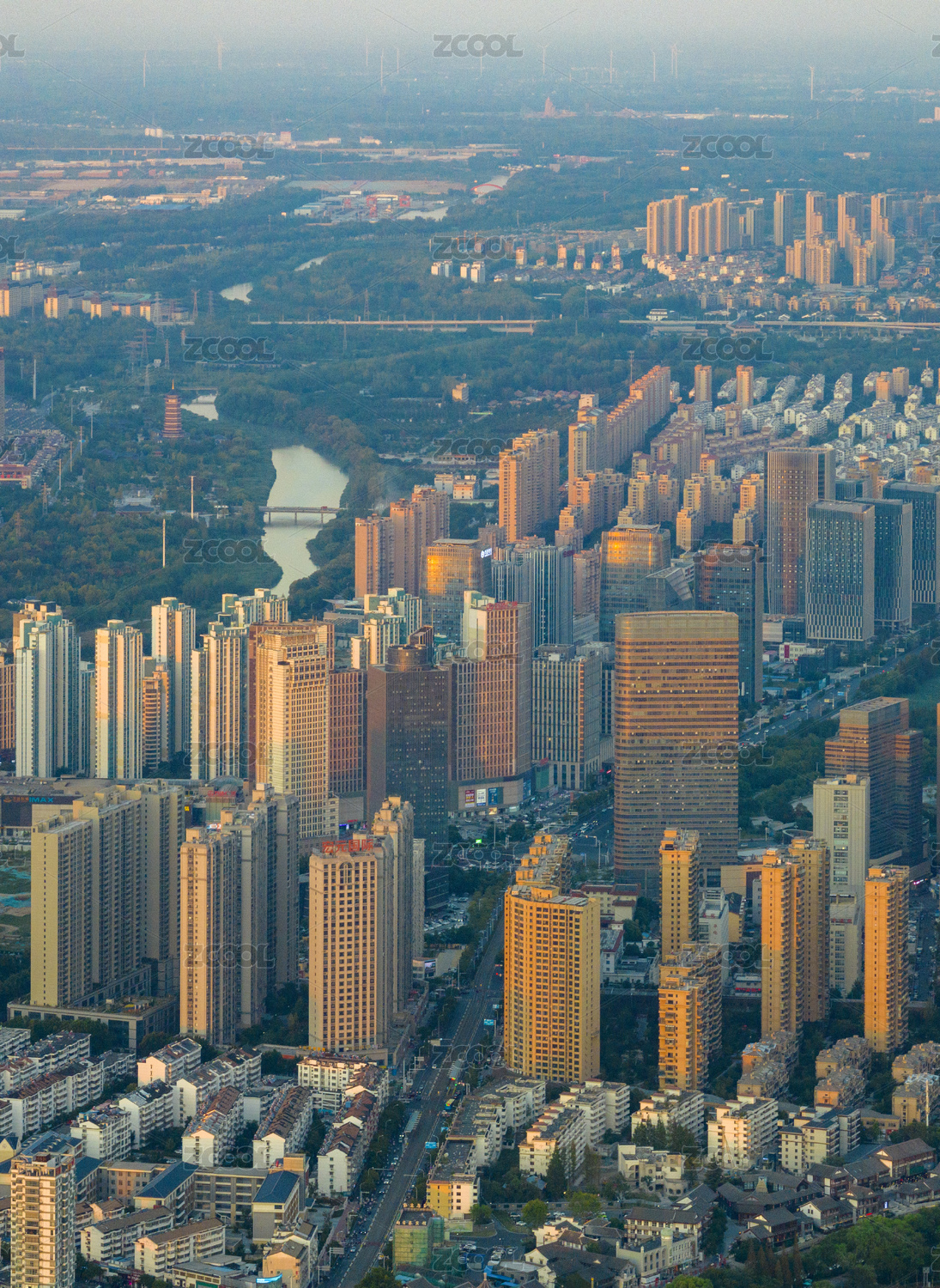 俯瞰夕阳金光中淹没在密集建筑群里的北京故