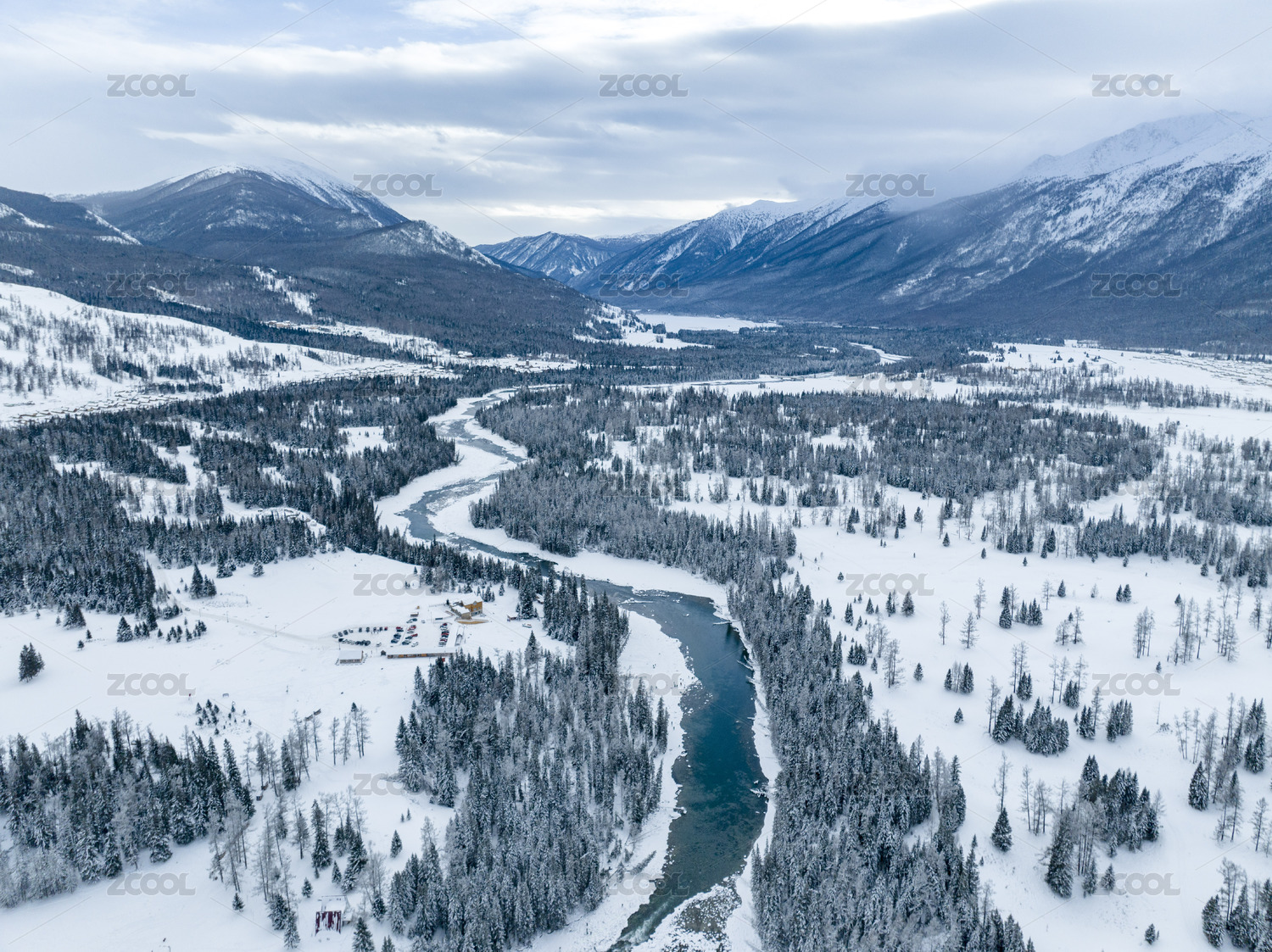 中国新疆阿勒泰地区喀纳斯雪景航拍