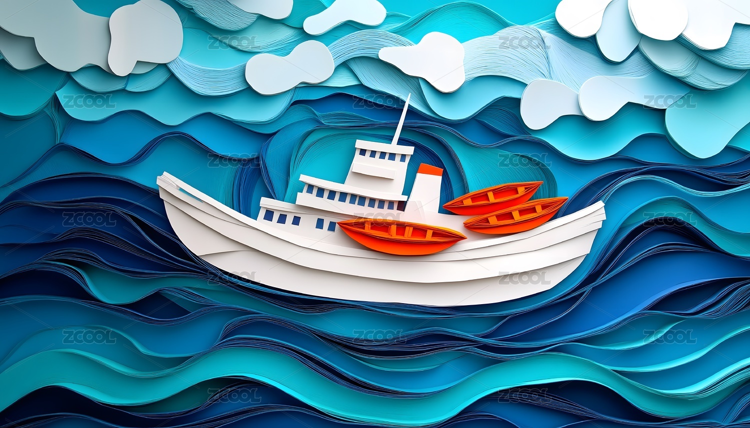 卡通邮轮乘风破浪