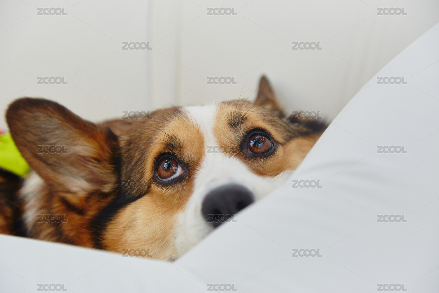 趴在沙发毯子上的宠物柯基小狗