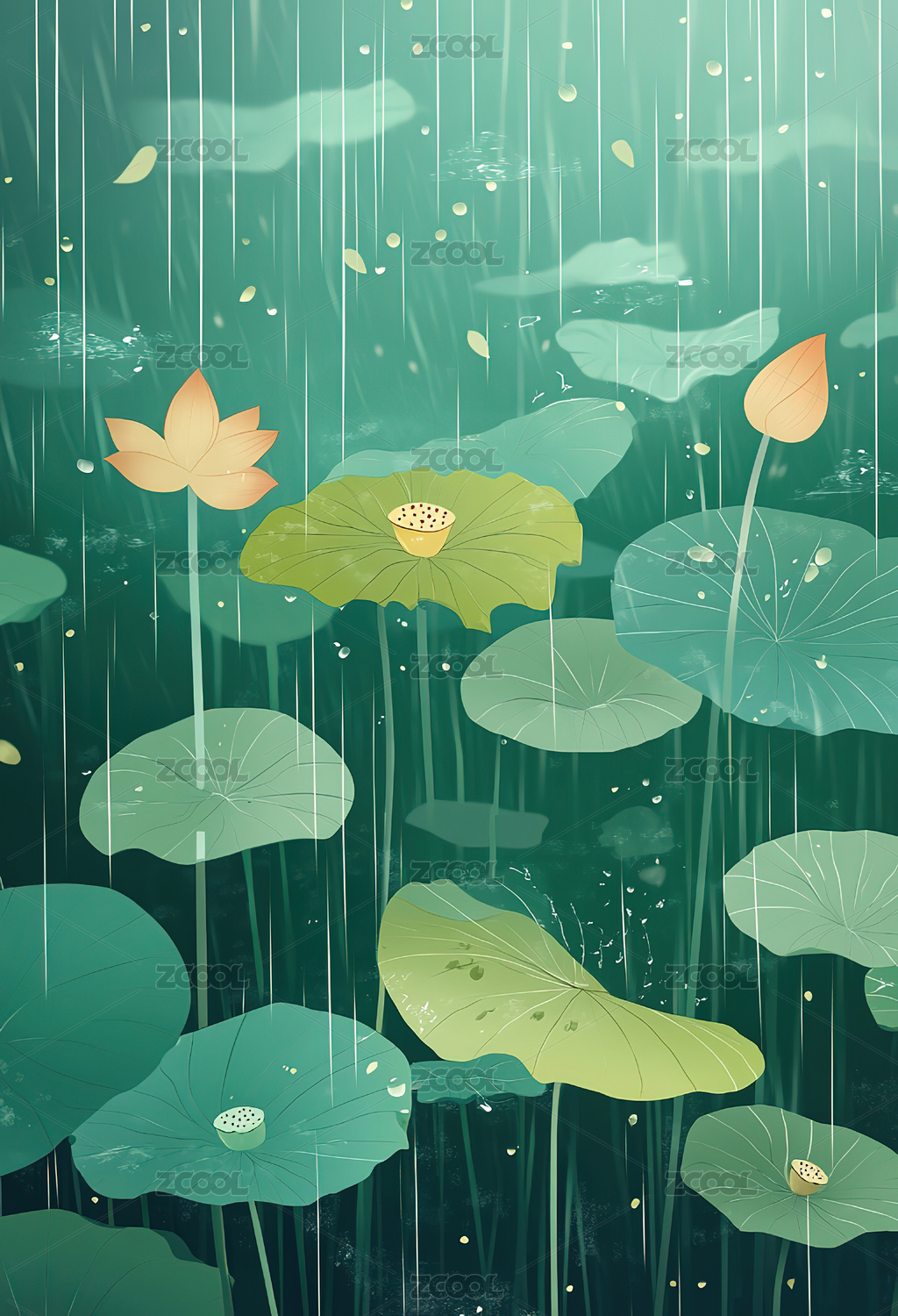 荷叶,自然,童话,扁平,插画