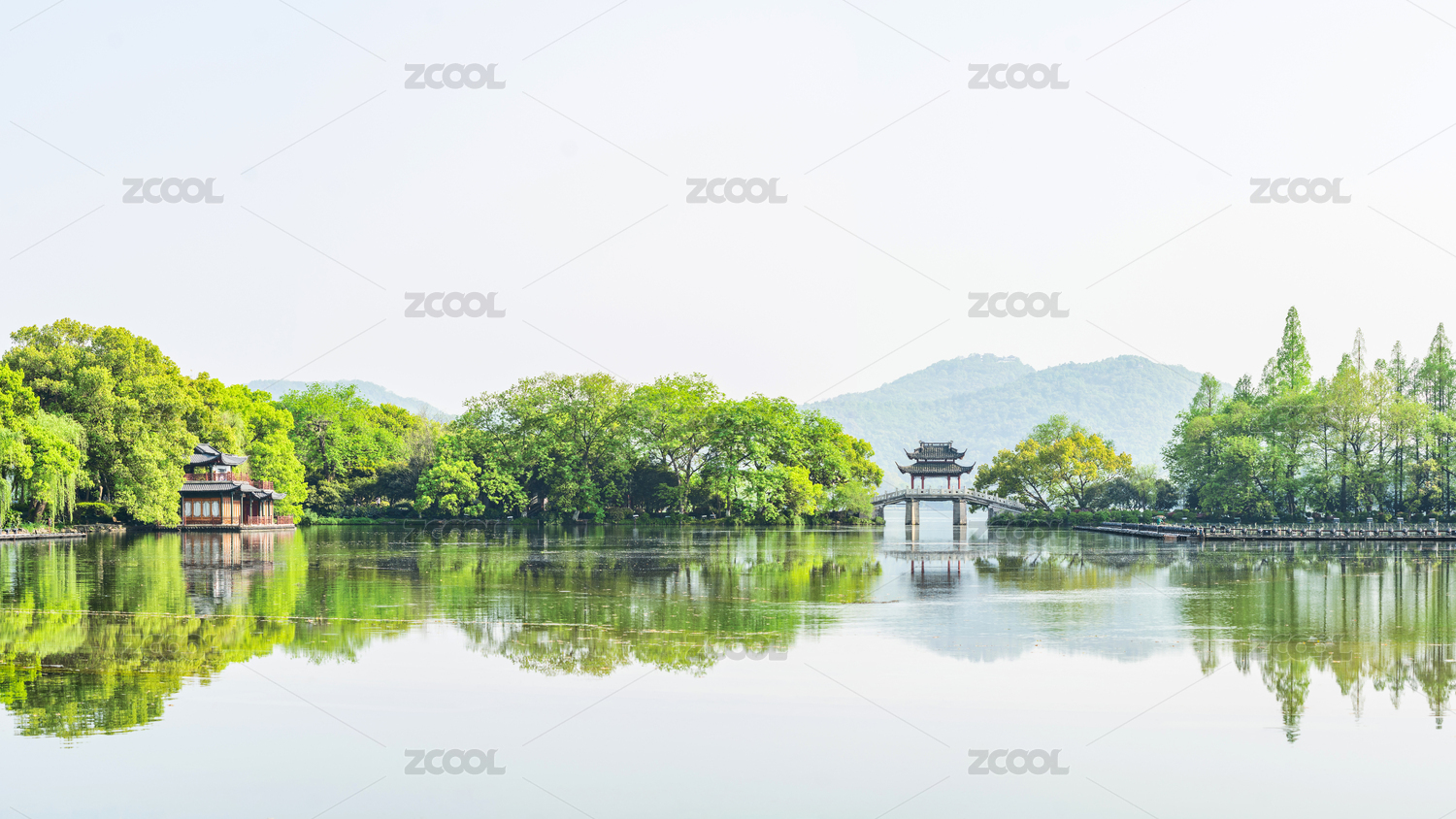 浙江省杭州西湖十景苏堤春晓景点春季风光