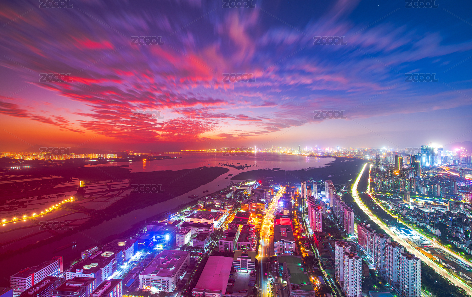 广东珠海鹏瑞珠澳湾中心日出航拍