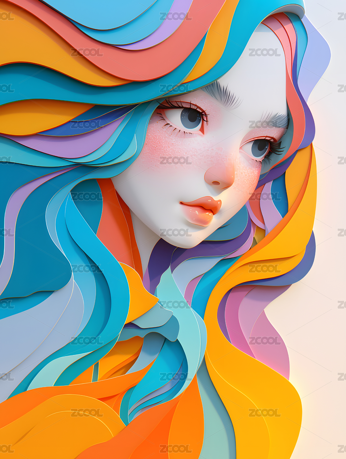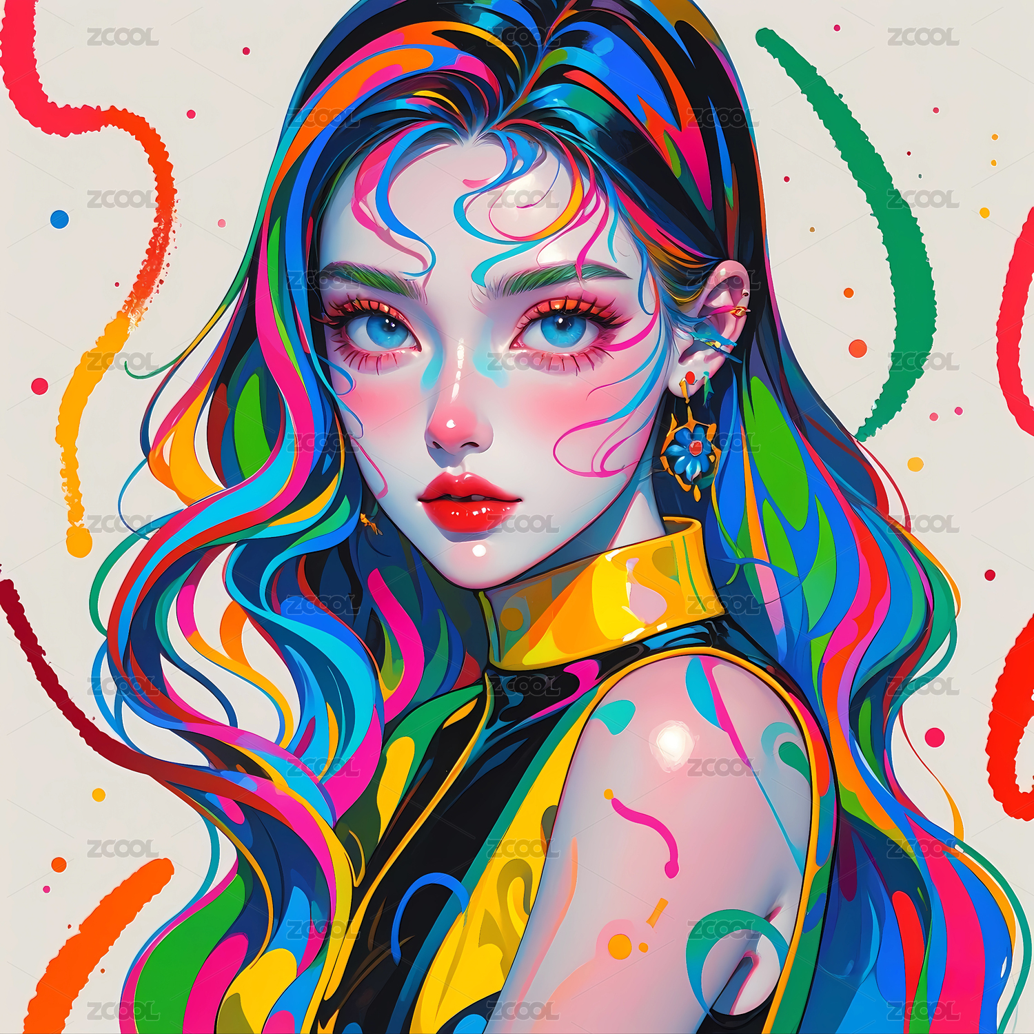 时尚,美女,色彩,插画,绘画,艺术,超现实