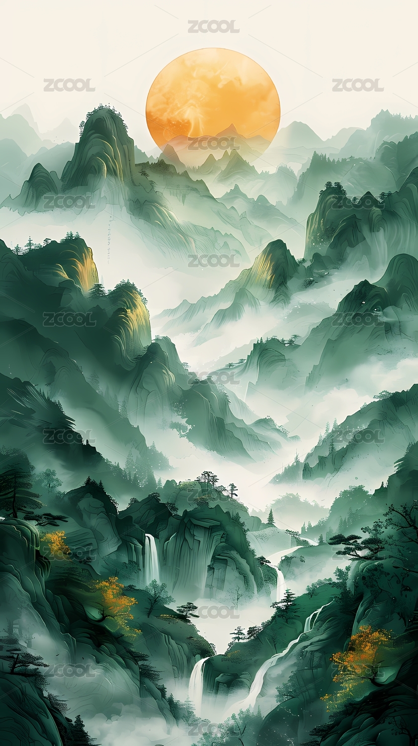 水墨青绿山水意境图