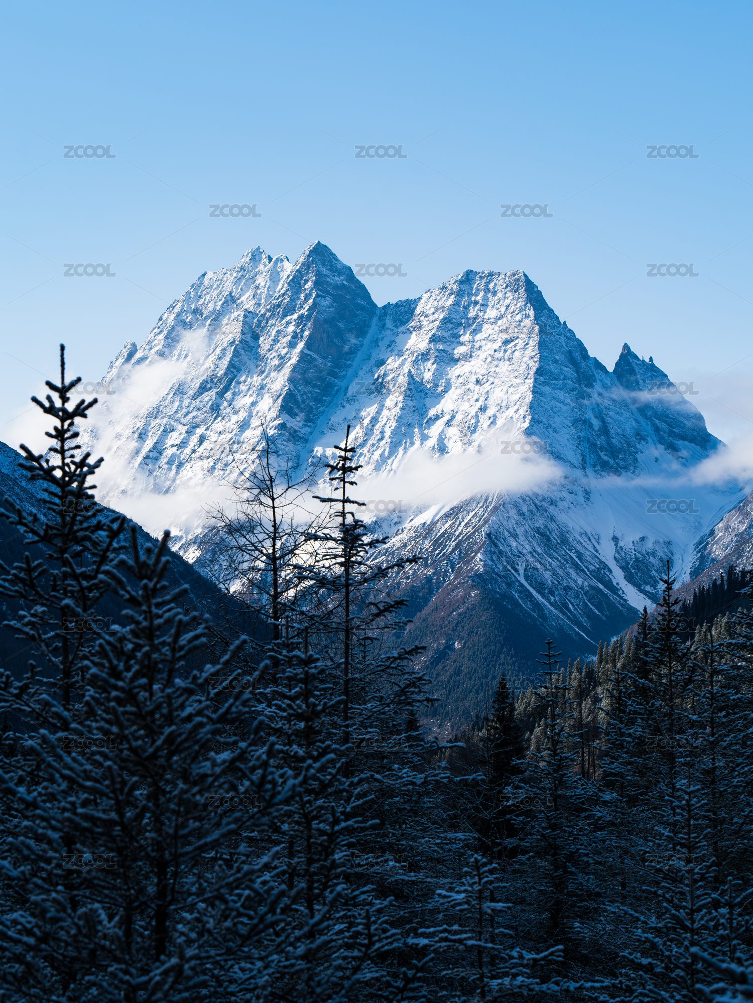 亚洲,中国,四川省,阿坝藏族羌族自治州,四姑娘山,红杉林,雪山,纵向,白天,旅游