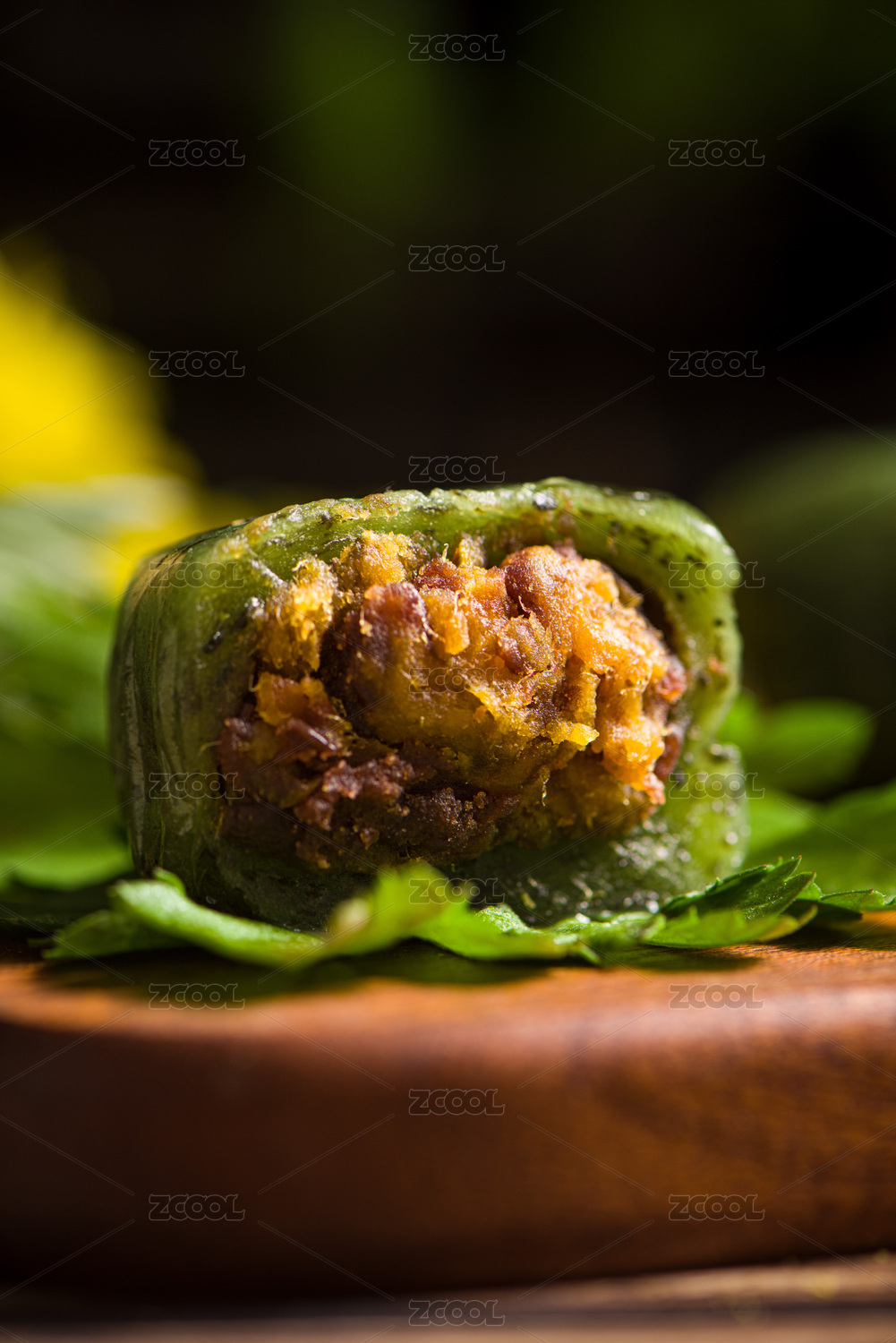 切开的青团美食特写