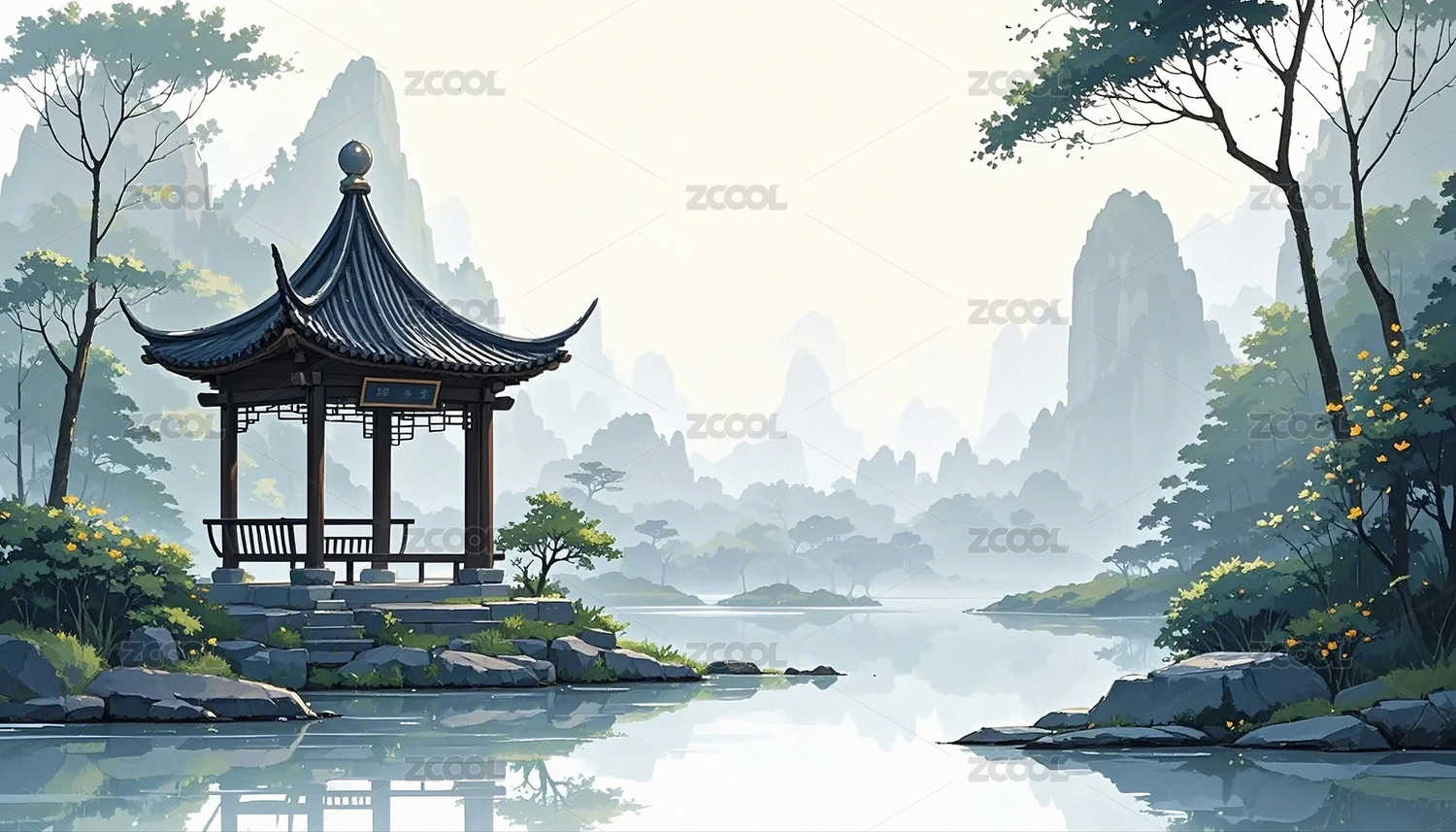 夏天,夏日,夏季,荷塘,荷花,山,水,池塘,山水,树木