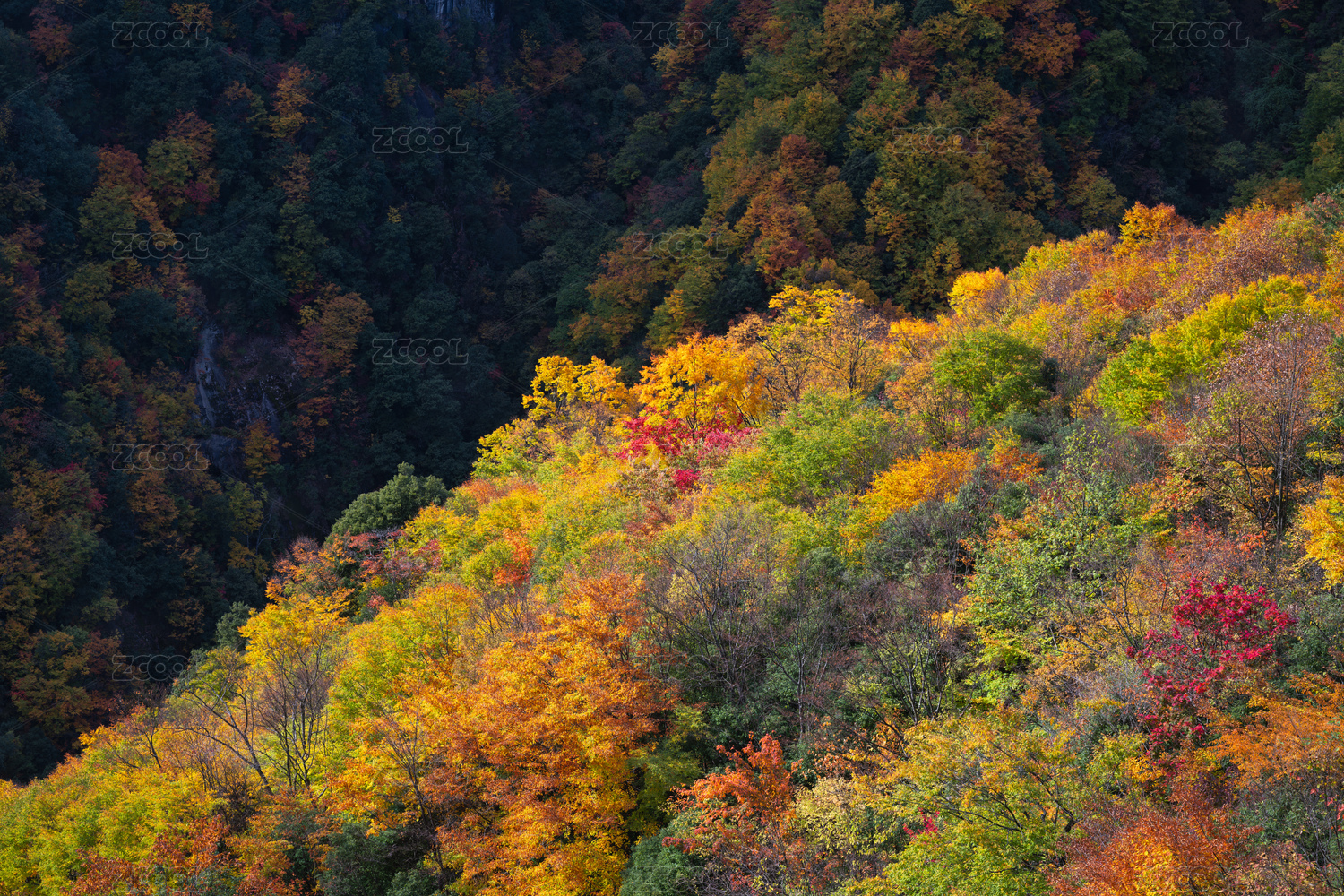 中国四川省广元旺苍光头山深秋彩林红叶