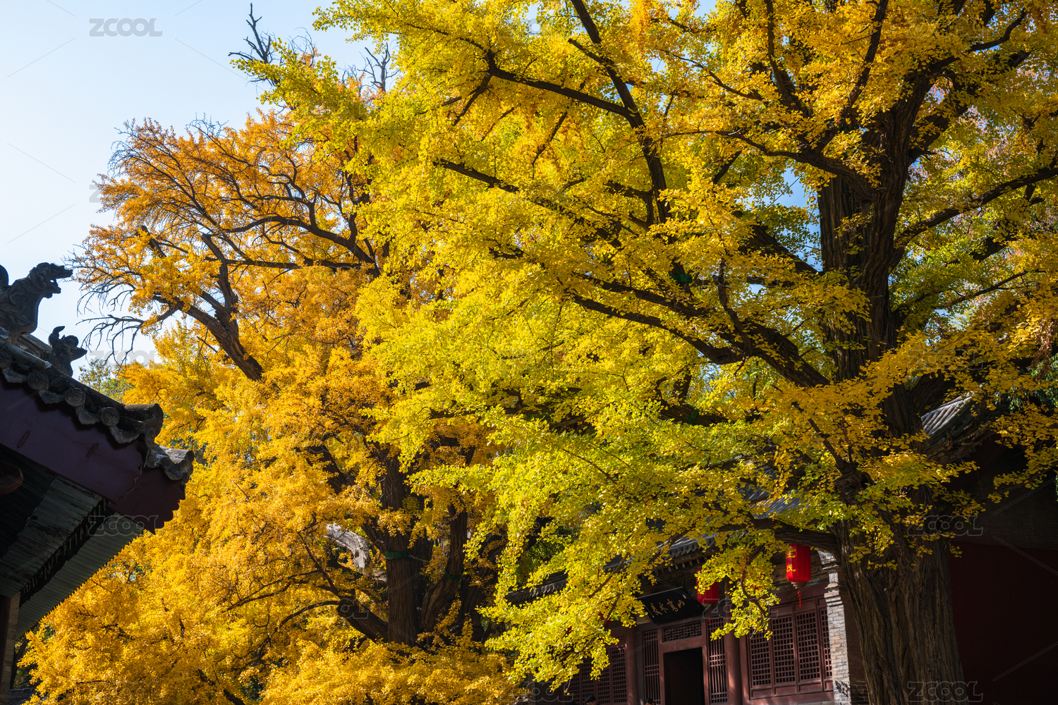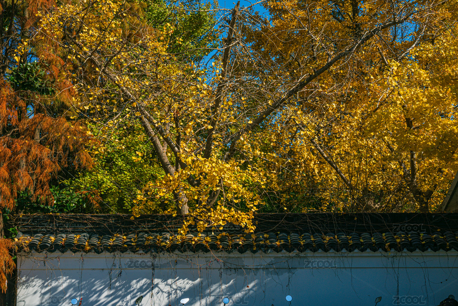 江苏省无锡市惠山古镇秋天里的古银杏树风光
