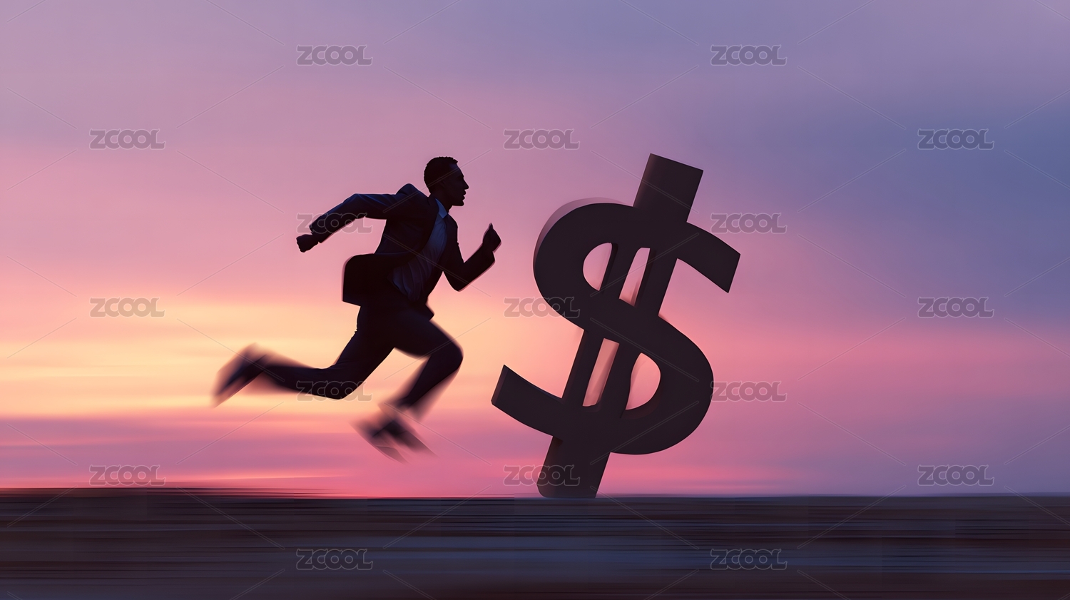 奔跑追逐美元符号象征财富