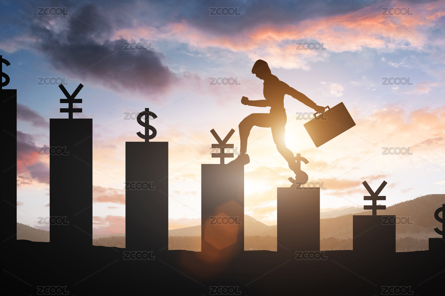 商务人士挑战突破自我获得金钱