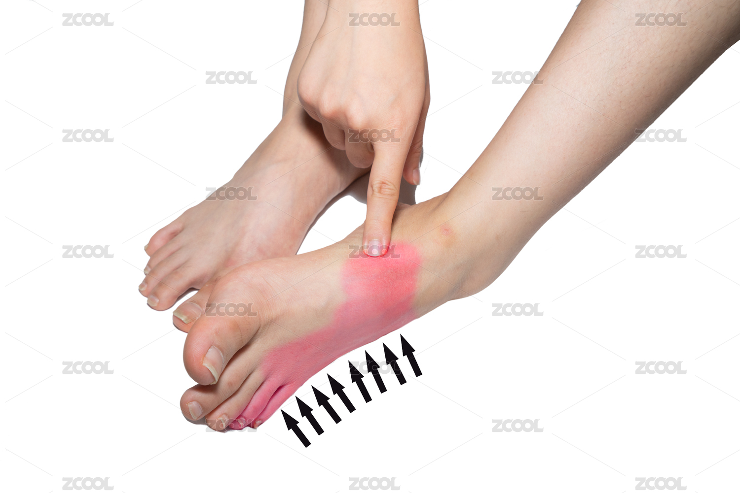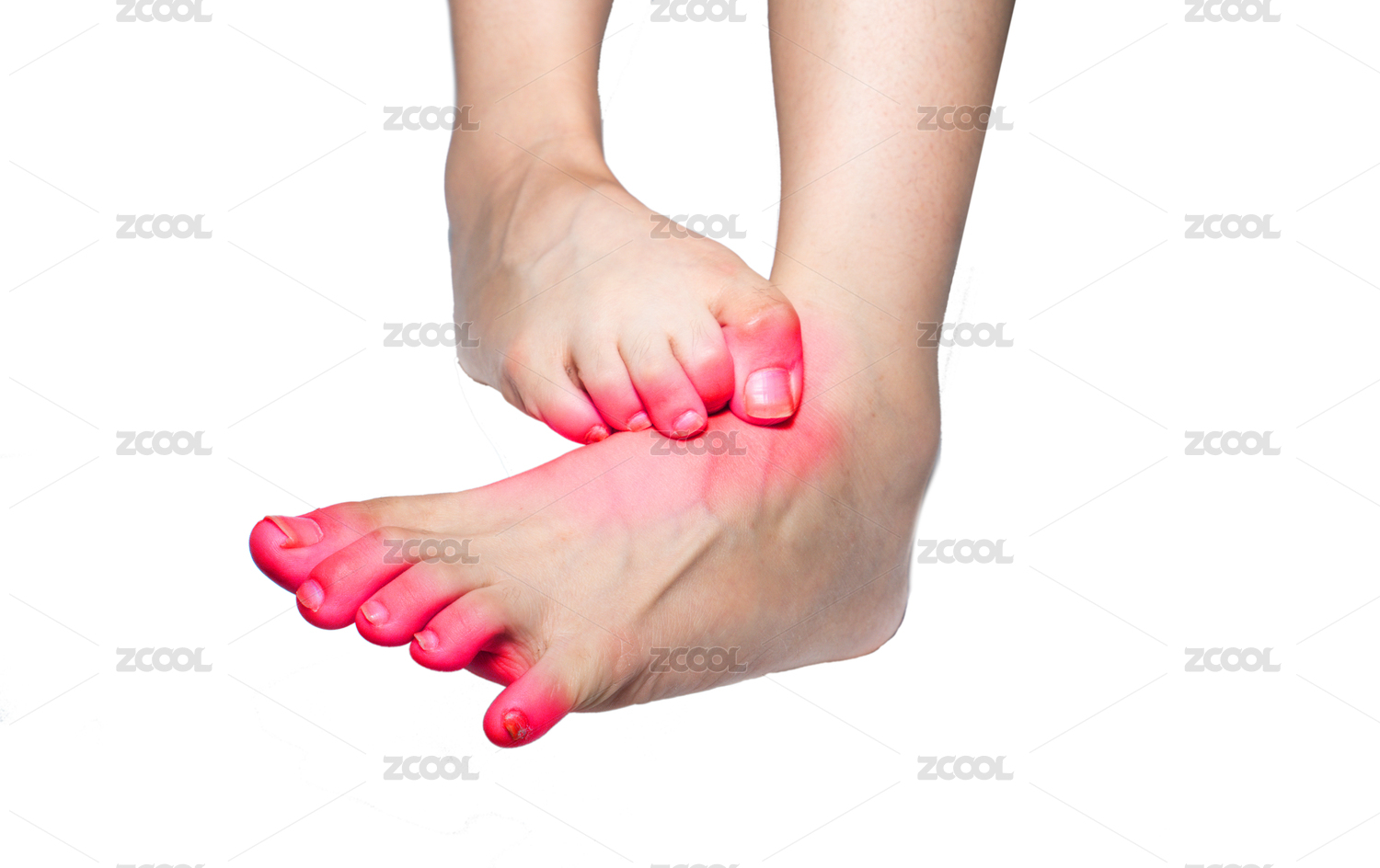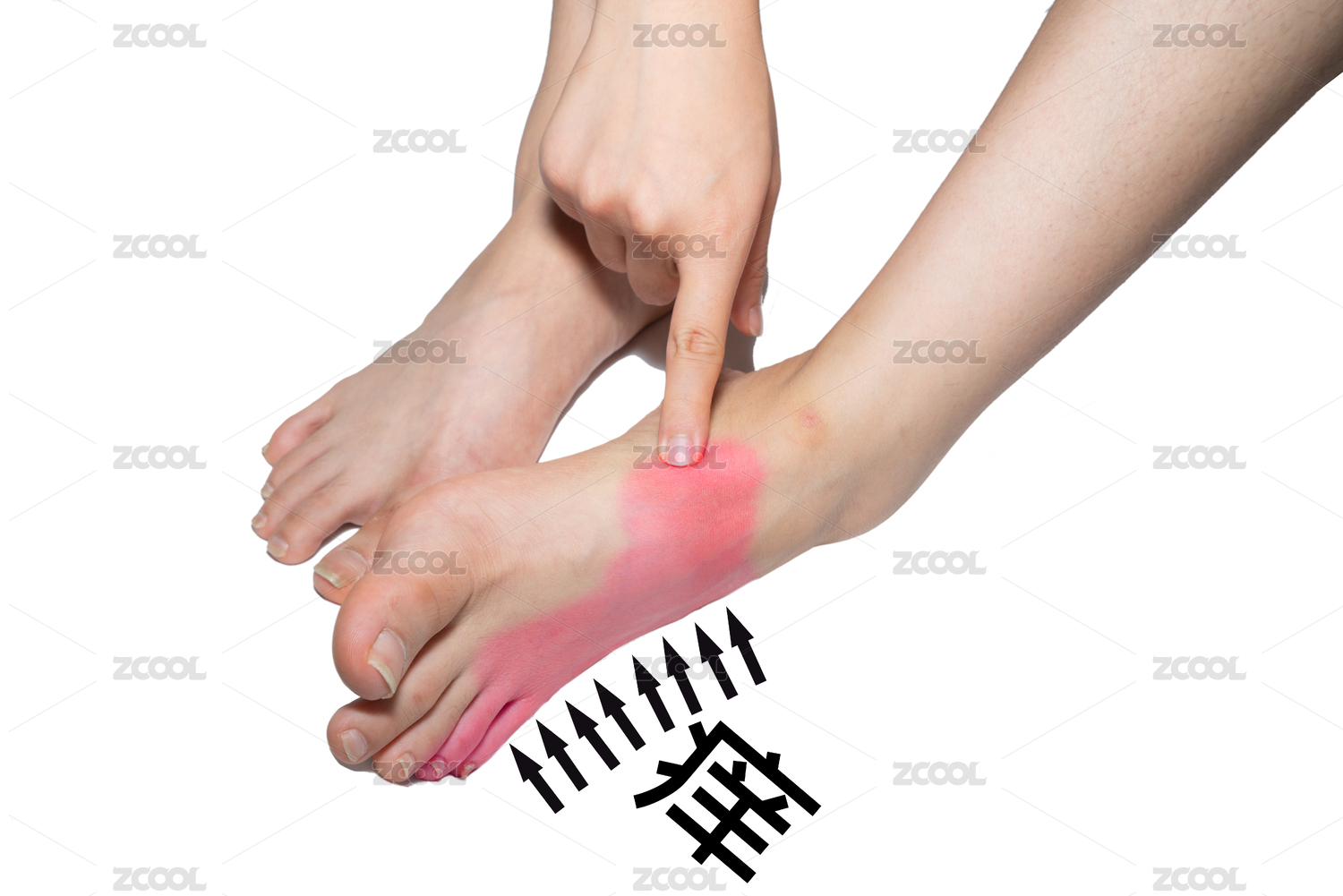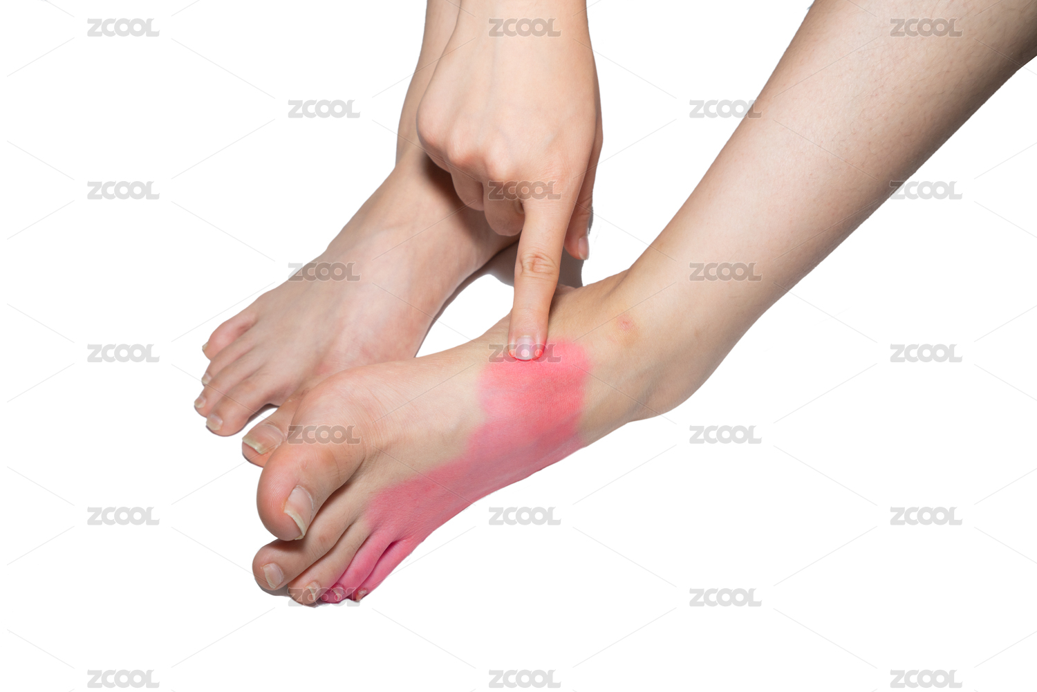 一个人脚部红肿痒痒正在挠痒痒疑似得了脚气香港脚灰指甲棚拍白色背景