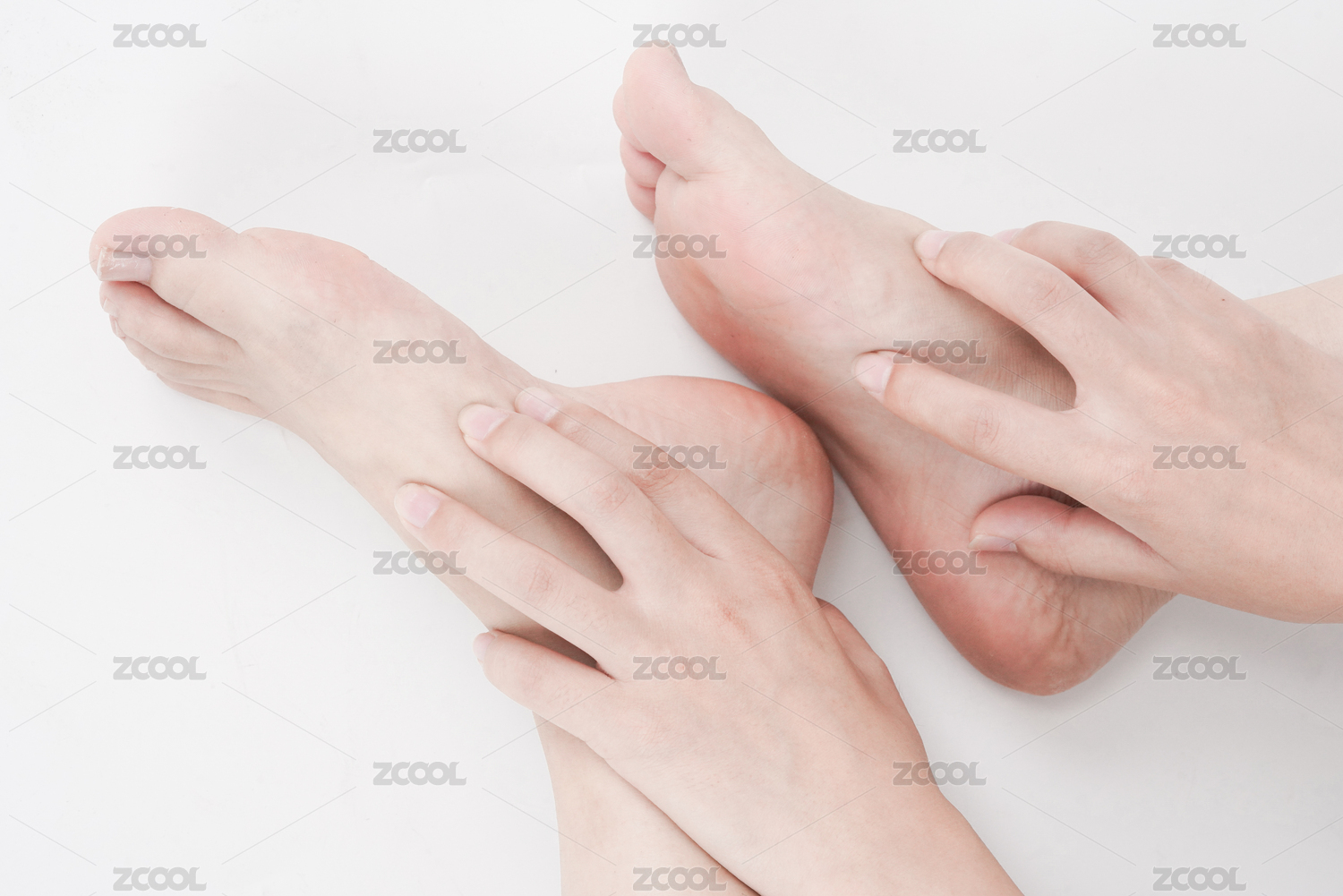 一个人脚部瘙痒难耐疑似得了灰指甲脚气香港脚正在挠痒痒解痒棚拍白色背景