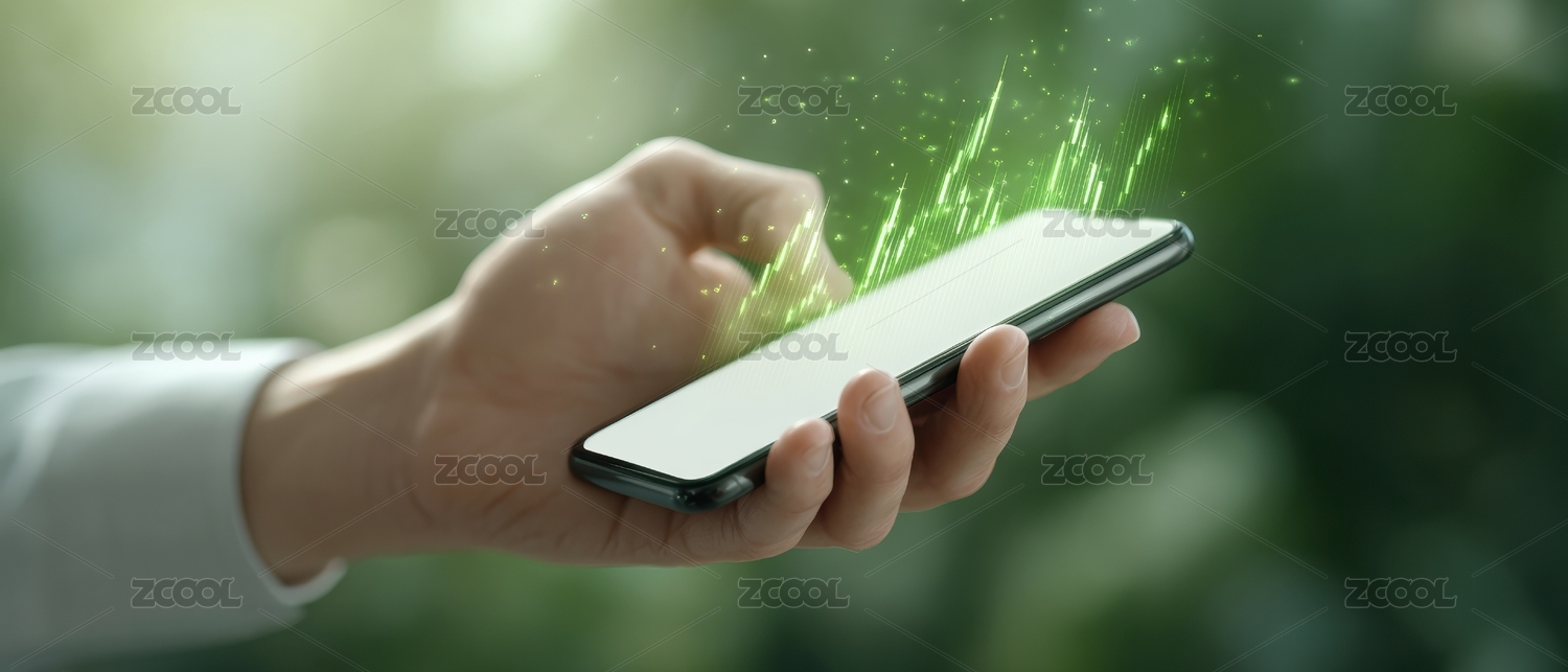手持智能手机绿色光效环绕