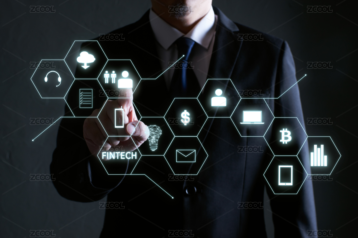 商人手按虚拟数字影像图标