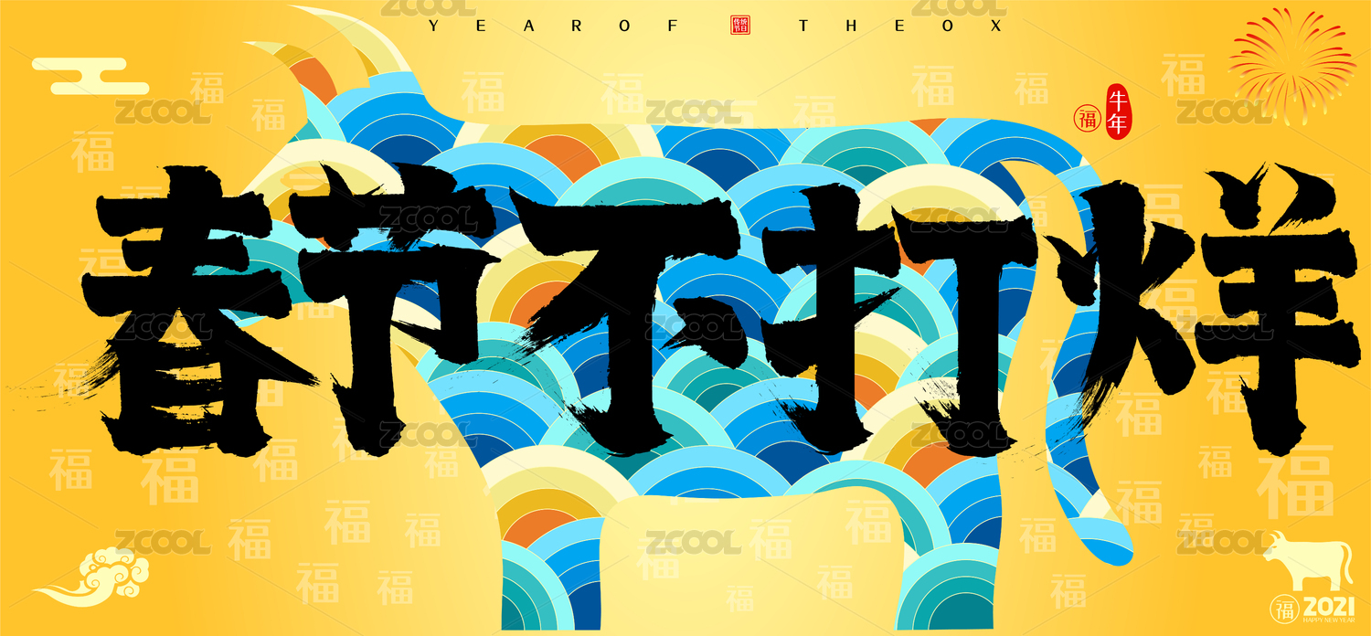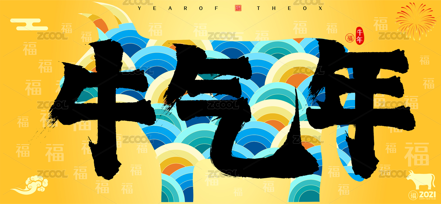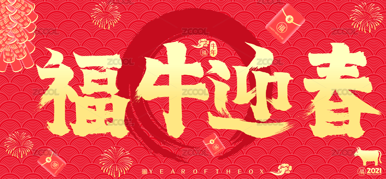2021福牛迎春牛年红包鞭炮矢量书法字