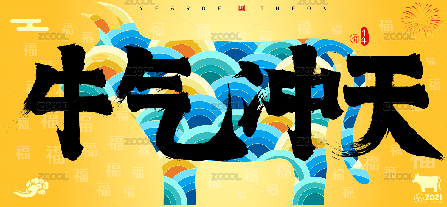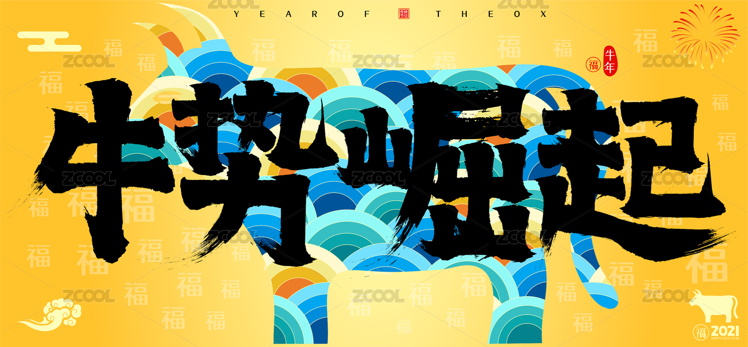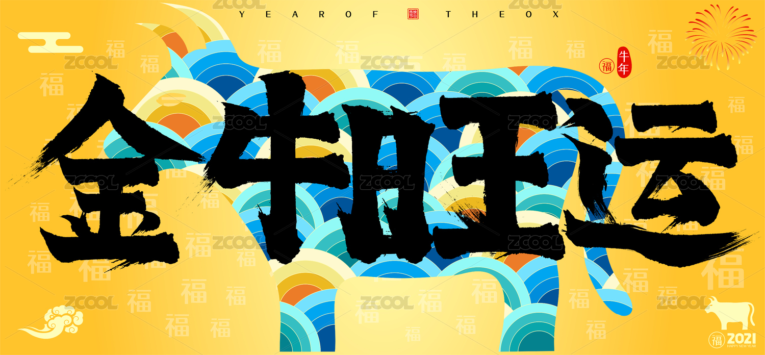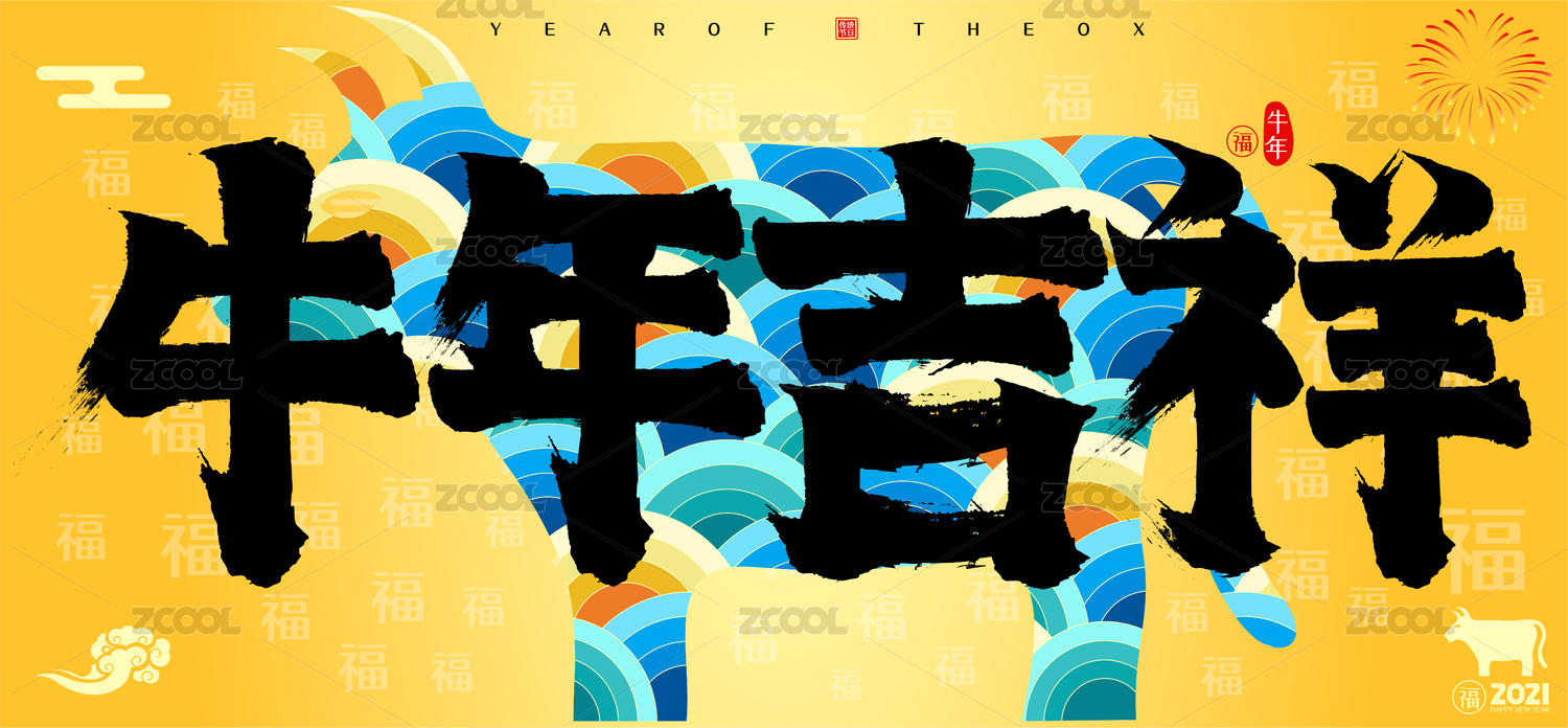 2021福牛迎春牛年红包鞭炮矢量书法字
