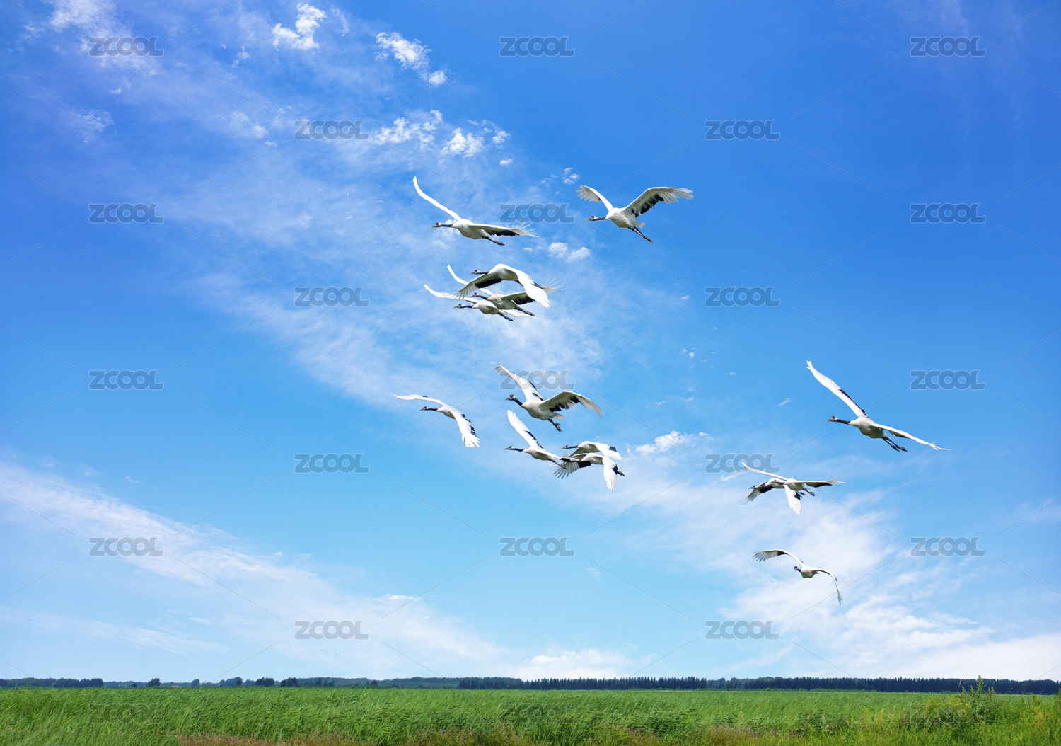 内蒙古呼伦贝尔大草原野生飞鹤丹顶鹤