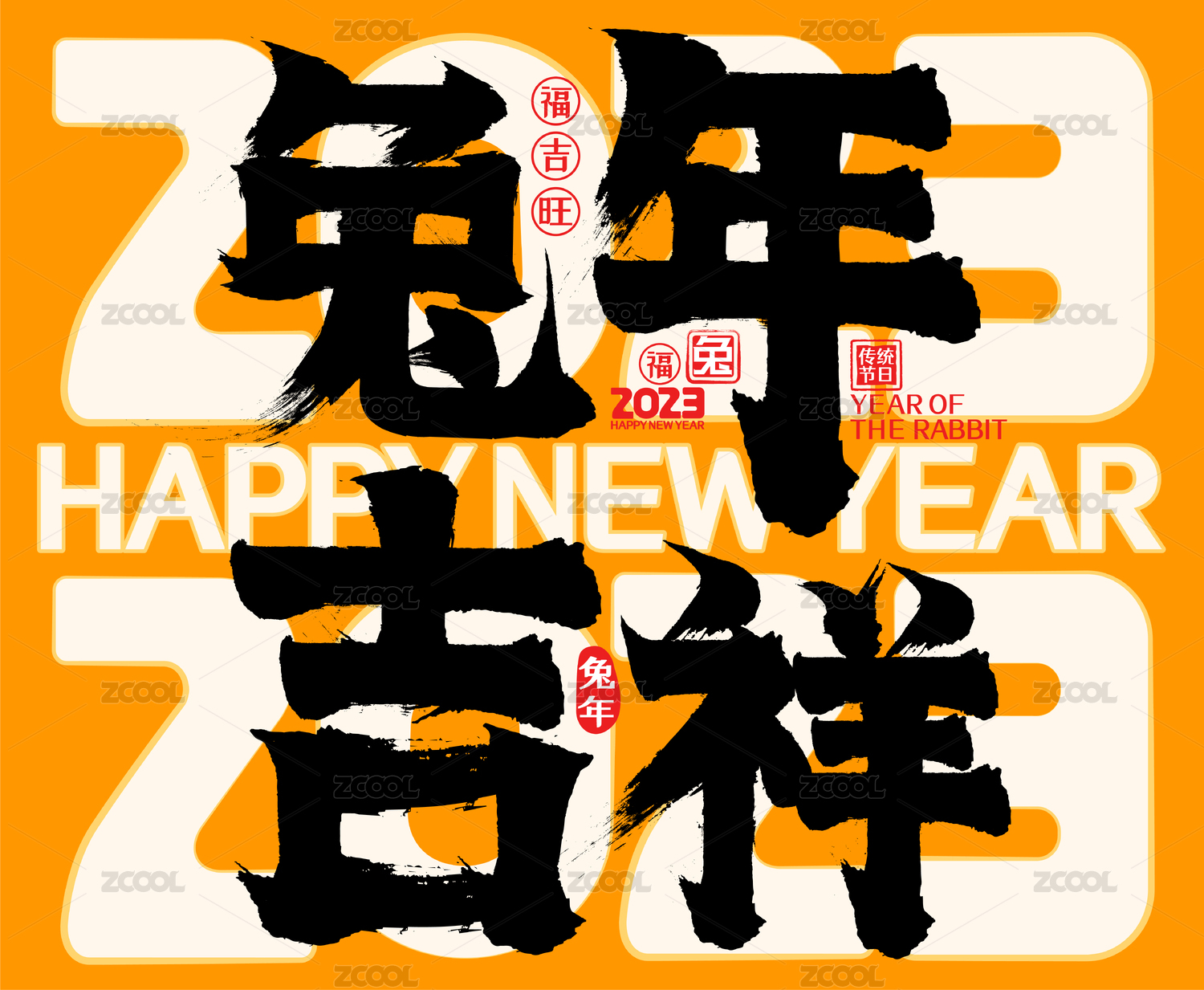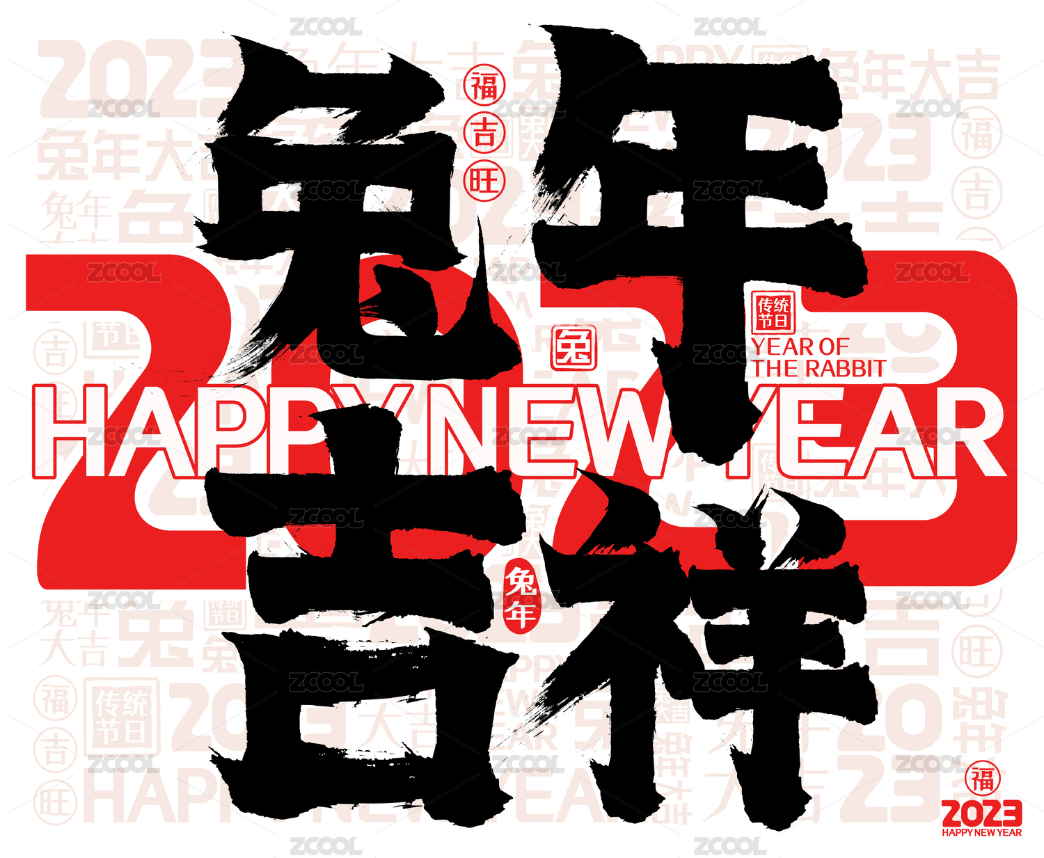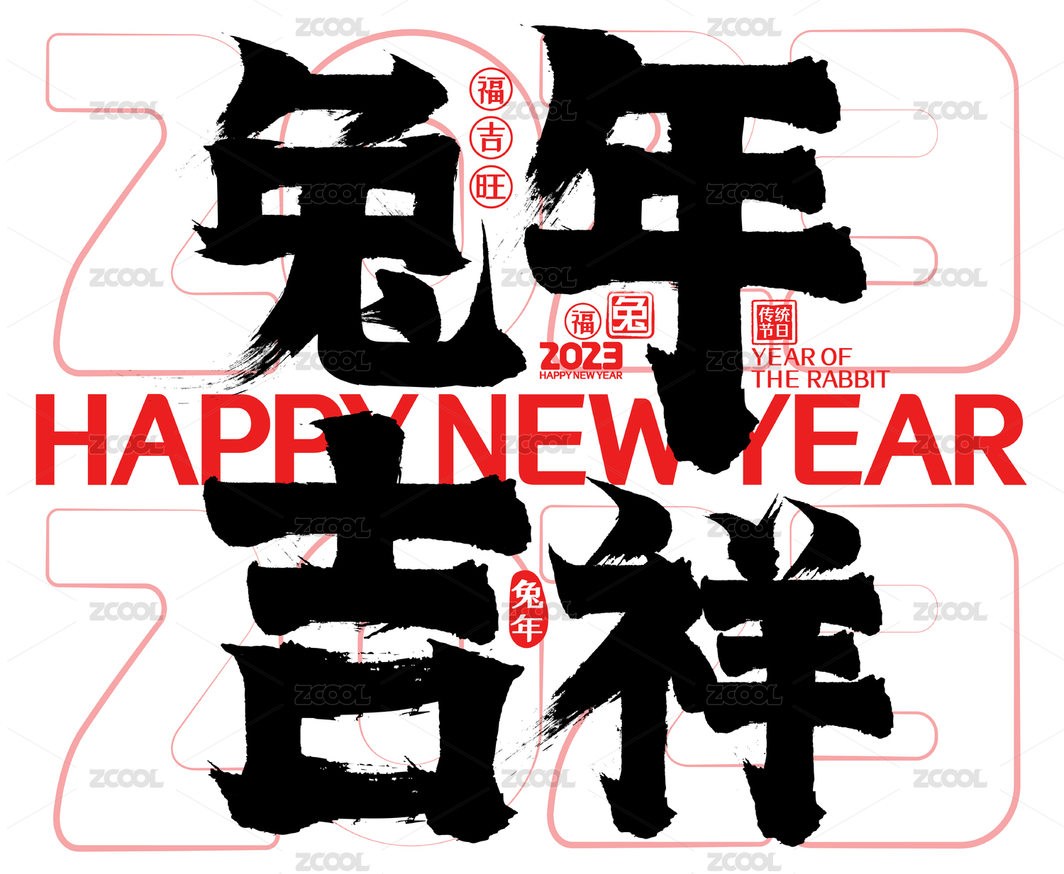 2023兔年吉祥喜庆中国红春节新年毛笔字
