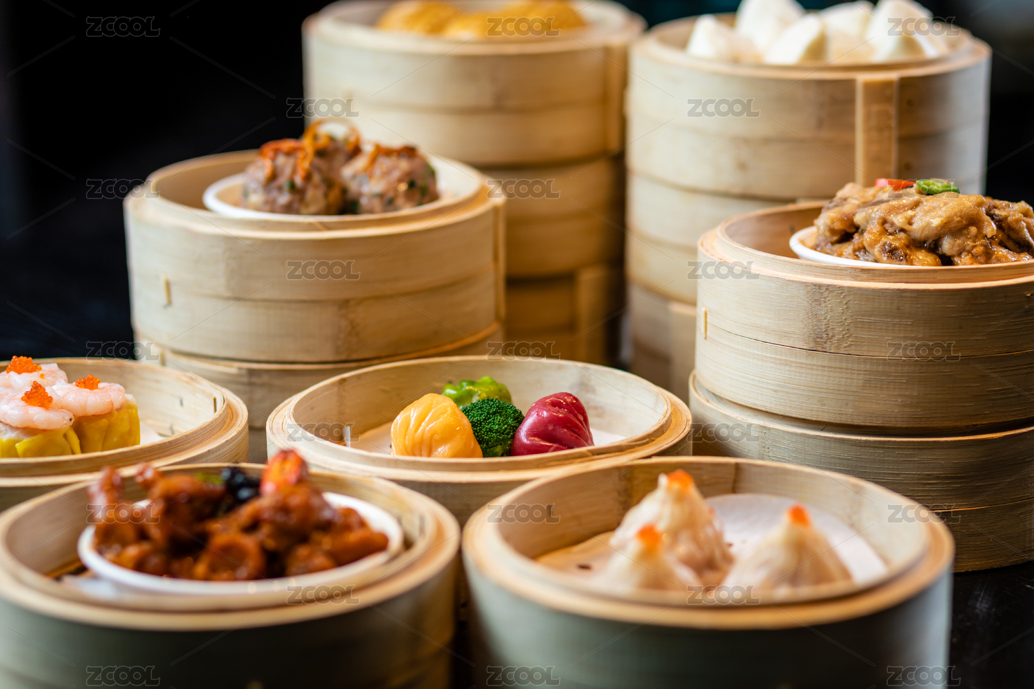 蒸笼上的各种点心包子发糕饺子蛋饺烧麦馒头