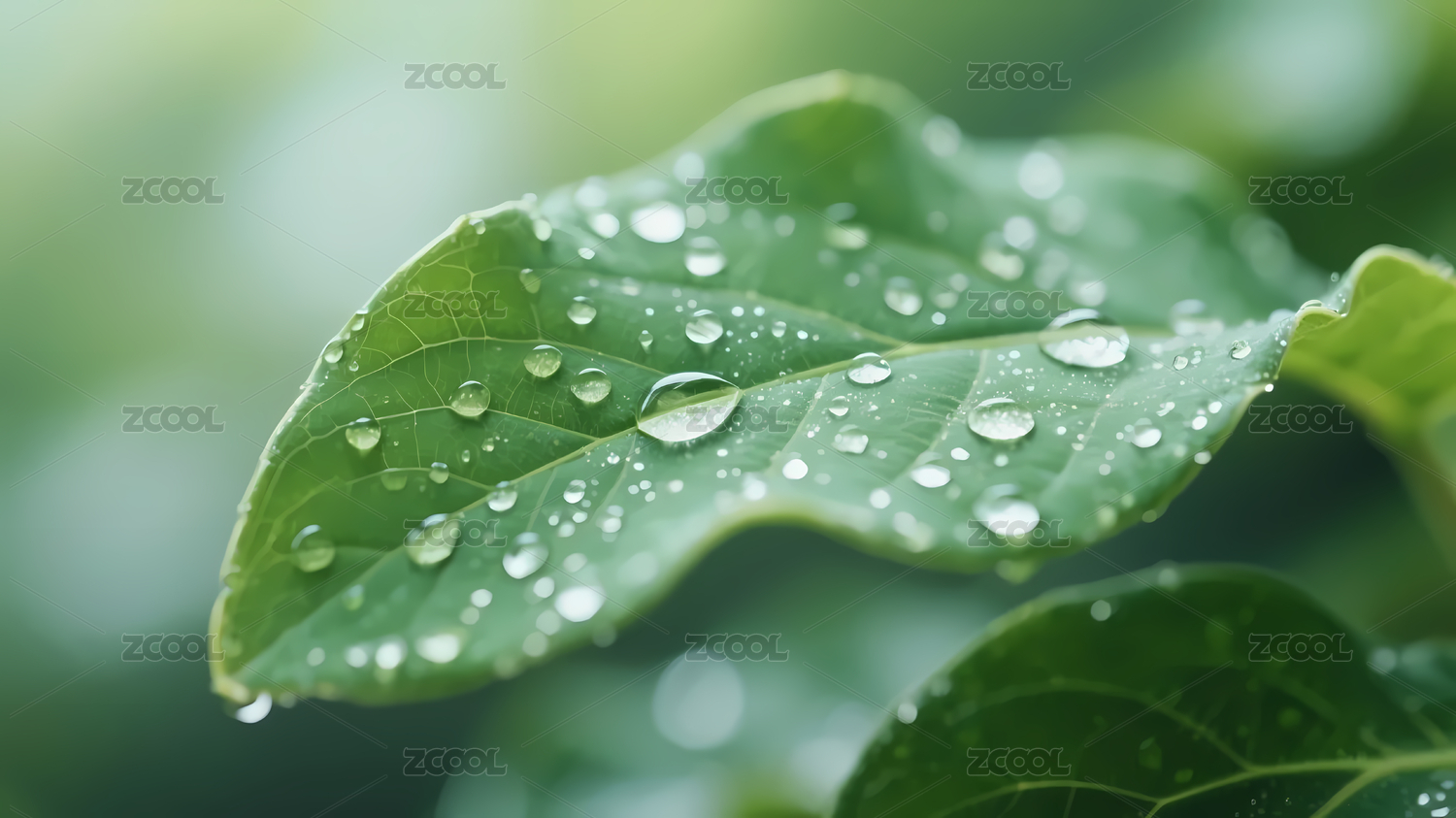 绿色叶子水珠清新景