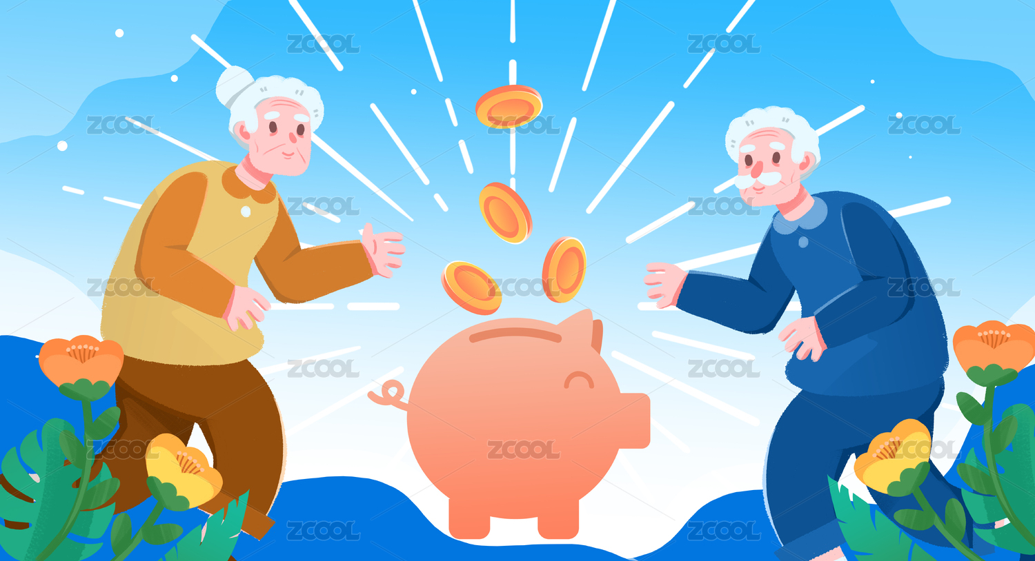 老人健康老年夫妻养老保险亲子游敬老日插画