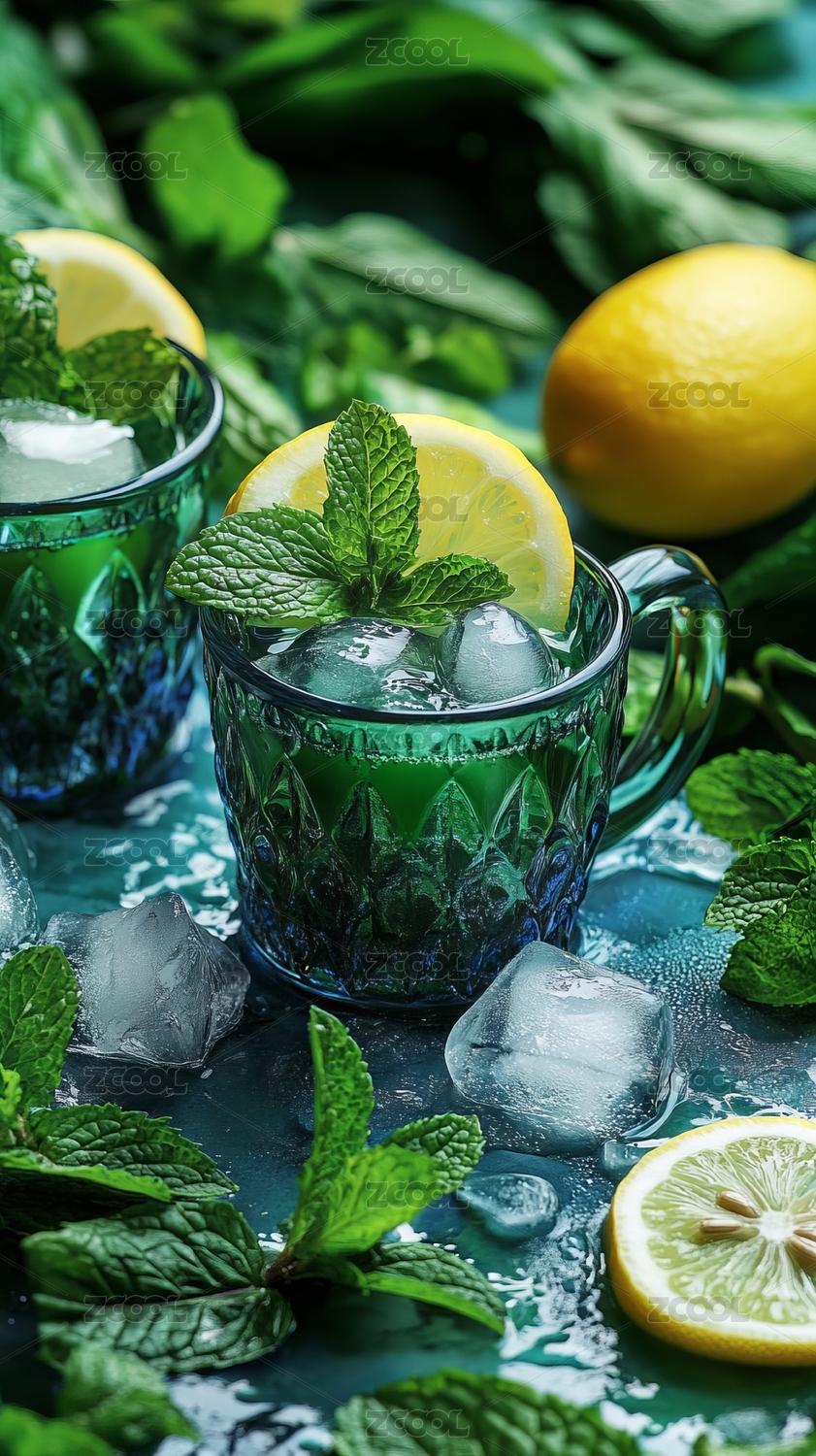 清凉薄荷柠檬饮品