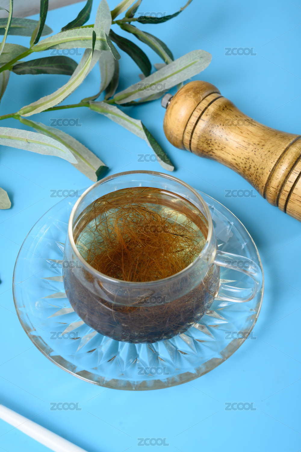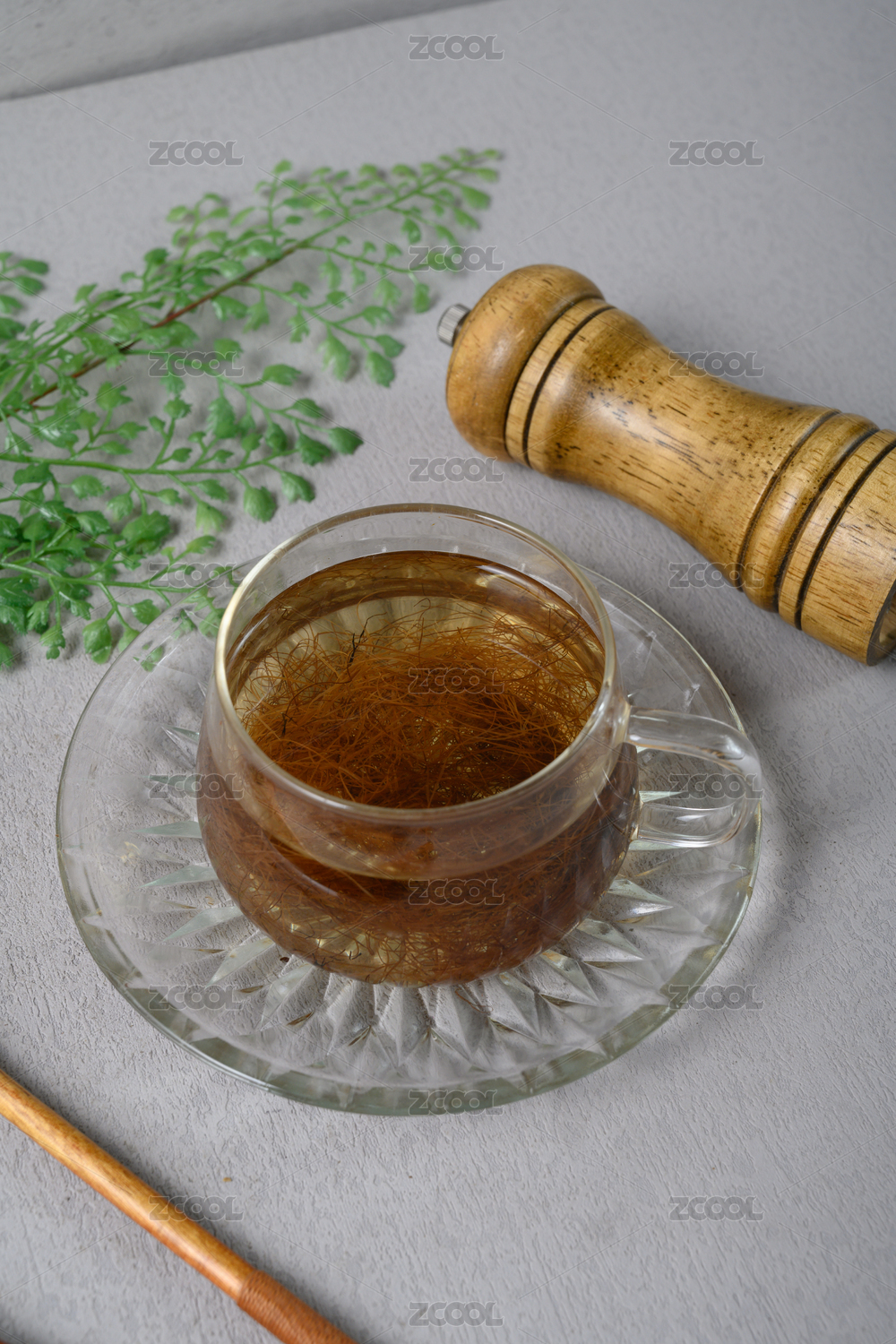 桌面上的盘子里的甘甜可口的玉米须茶