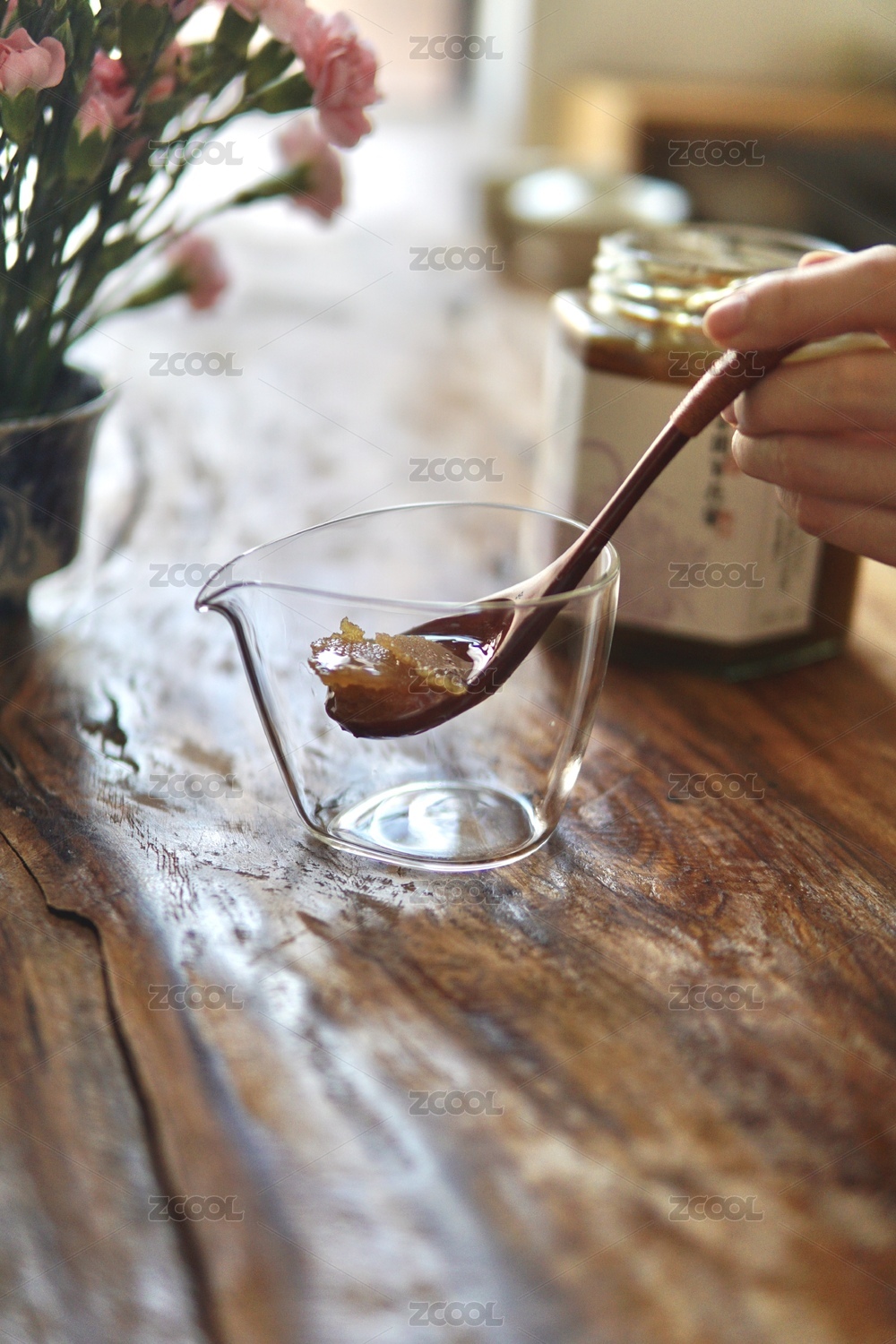 杯子里的结晶蜂蜜