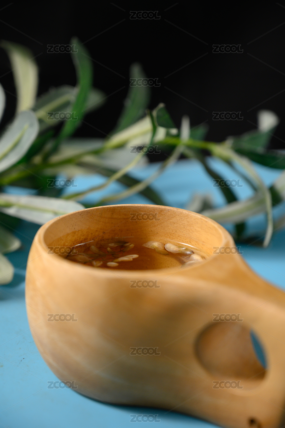 桌面上的盘子里的甘甜可口的银杏叶泡水