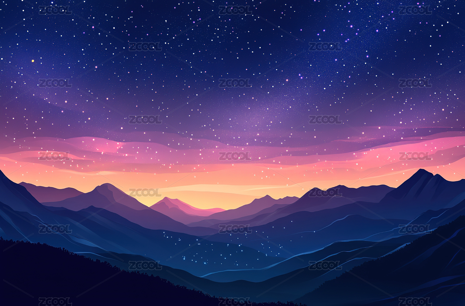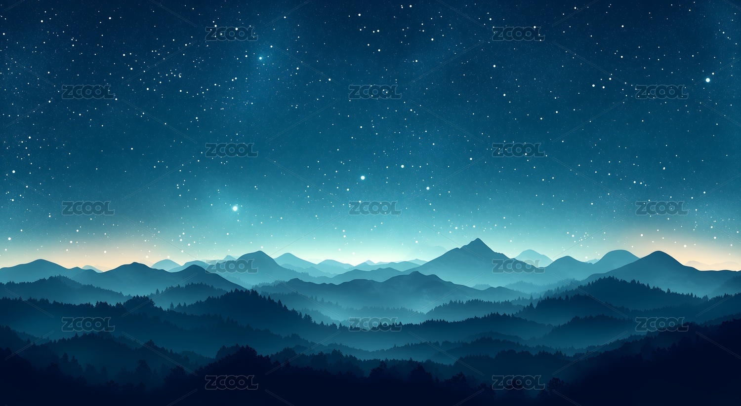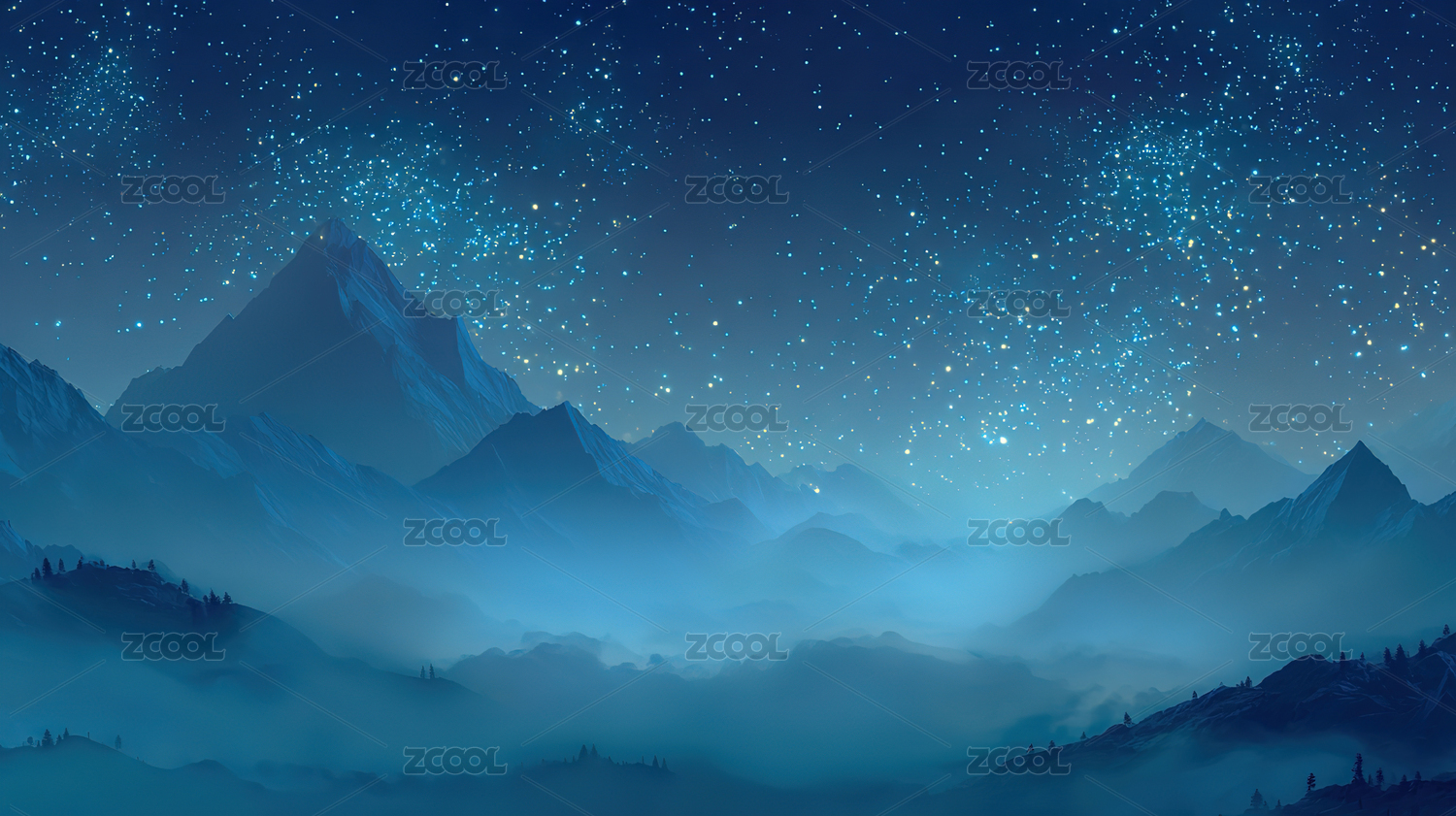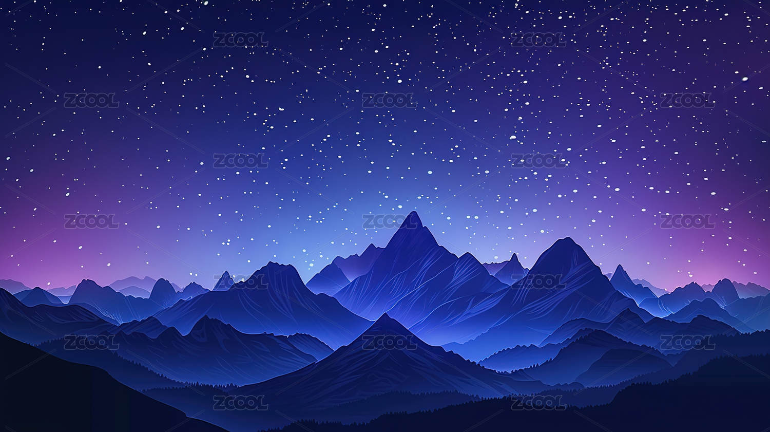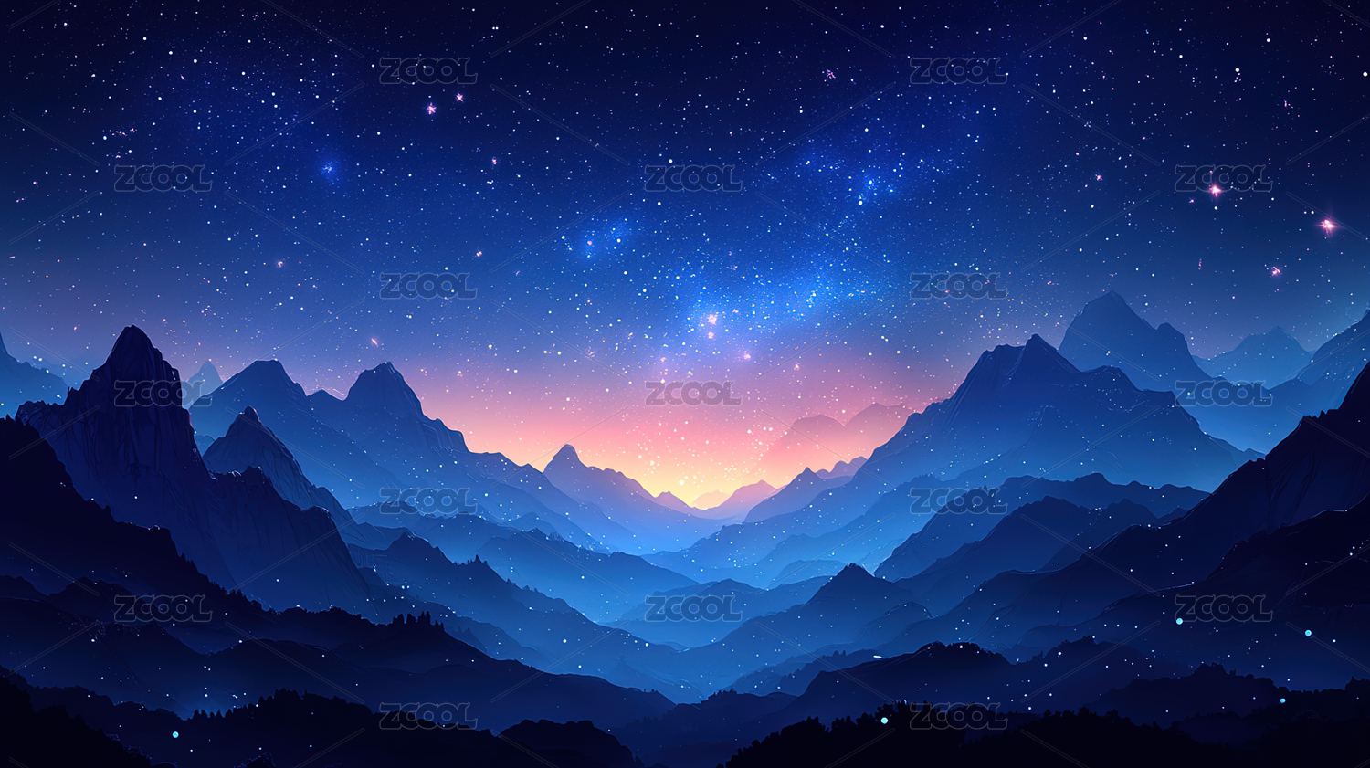 星空下的蓝色山脉